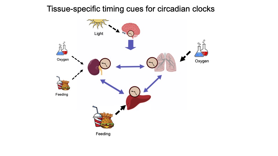 While previous studies primarily addressed the role of the master clock in resetting peripheral clocks, our knowledge regarding the communication among clocks between and within peripheral organs is rudimentary.