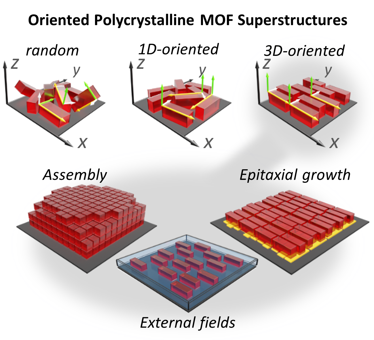 b) the understanding of the key compositional variables for an optimized conversion from Cu(OH)2 NBs to aligned Cu-based MOF crystals. This investigation allowed us to develop protocols for 12 heteroepitaxially oriented MOF film systems. Selected outcomes: Chem.Sci. 2020, 11, 8005; Advanced Materials 2023,35, 2211478; Adv. Mater. Interfaces 2023, 10, 2202461; Chemical Science 2023, 14, 12056; Advanced Materials 2024, 2309645.