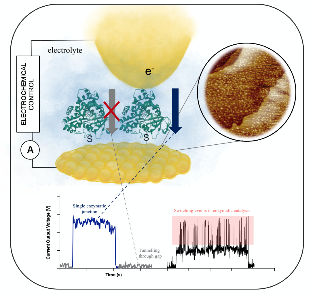 - We have shown electrical transduction of enzymatic catalysis in a single enzyme trapped in a nanoscale junction. The study allowed the comparison of the slow P450 with a fast Glutathione Reductase enzymes.