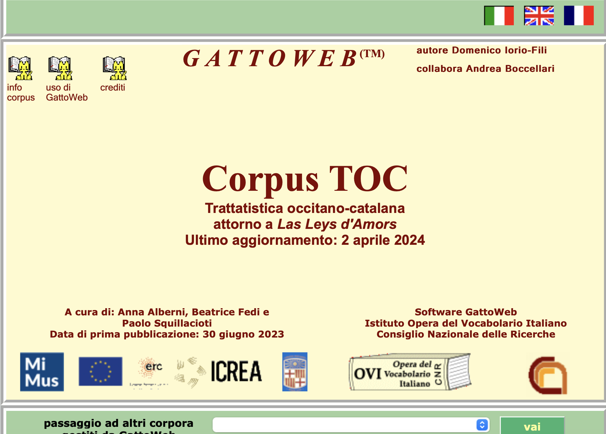 Output 2) The second major output of the project is the Corpus TOC – Occitan-Catalan Treatises related to Las Leys d’Amors (available at: http://tocweb.ovi.cnr.it/(odnośnik otworzy się w nowym oknie)). While archival records offer valuable insights into the historical context of musical activity, they often fail to provide specific details about the lyrical repertories and musical styles that were actually performed. Recognizing this limitation, we have developed a lexicon centered on terminology related to poetry, music, and performance. The Corpus TOC, focused on lemmatizing the text of Las Leys d'Amors and other 14th-century Catalan and Occitan treatises, holds the potential to significantly enhance our lexicon and provide critical clues about the nuances and complexities of medieval poetry and music. The lemmatization of the corpus is selective, prioritizing specific semantic fields: 1) Lexicon related to metrics, rhetoric, and literature; 2) Grammatical lexicon; 3) Lexicon relevant to diverse domains such as linguistics, philosophy and law.