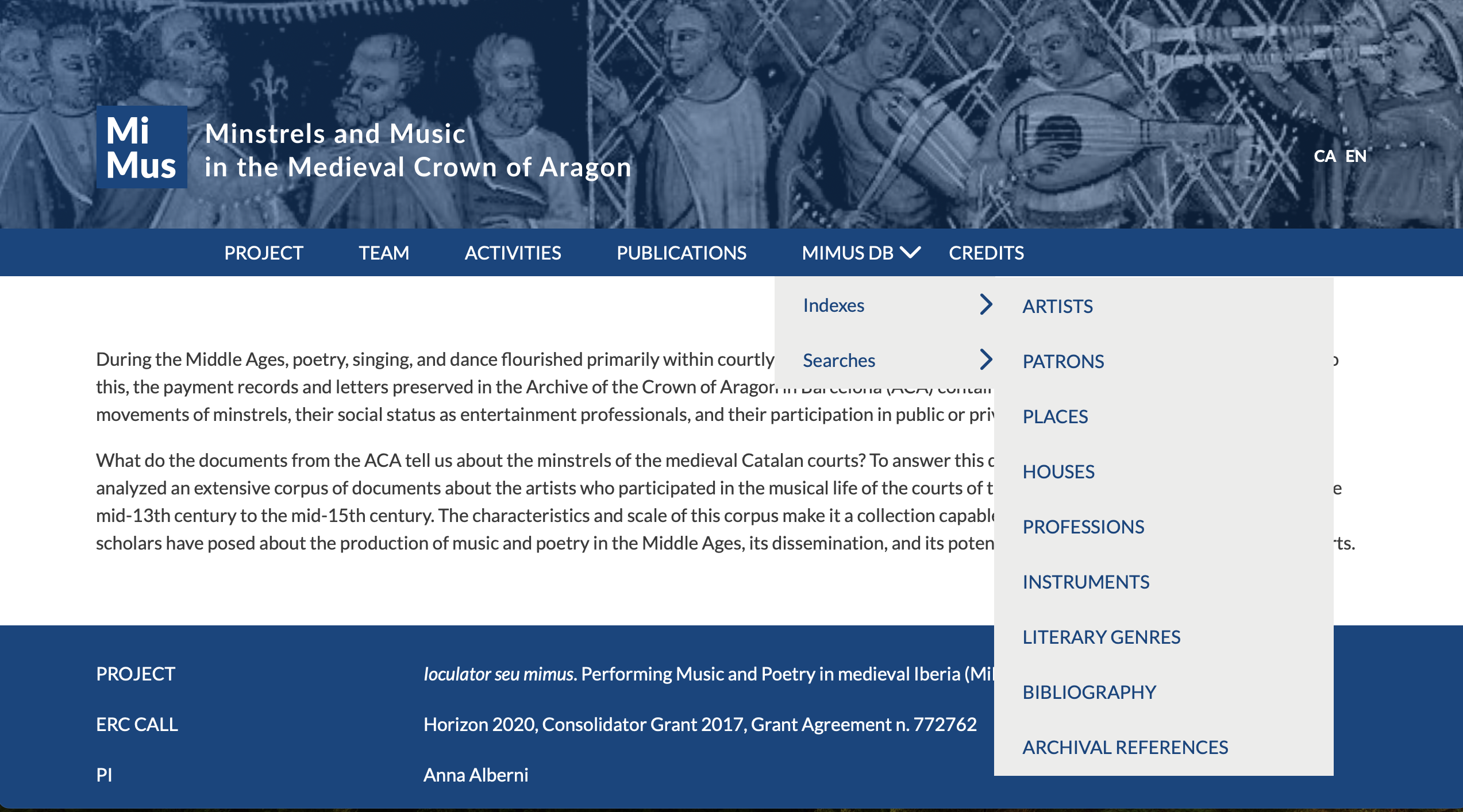 Output 1) The MiMus DB (available at: http://mimus.ub.edu/ca/base-de-dades(odnośnik otworzy się w nowym oknie)) offers access to an extensive collection of historical data, including over 1,654 meticulously curated and annotated documents related to artists involved in the musical life of the courts of the kings of the Crown of Aragon. This evidence not only corroborates existing hypotheses derived from the intertextual borrowings and allusions embedded within medieval Occitan, Catalan, and French poetry but also empowers researchers to gain new insights into the creation and reception of lyrical texts. Consulting the documents curated in the MiMus DB proves invaluable, particularly in mitigating the dearth of manuscripts bearing musical notation—a persistent challenge confronting Catalan music historiography. The database serves also as a tool for investigating the relationships among patrons who supported musical activities, demonstrating that in the 14th century, French song in particular, had evolved into an international commodity with the ability to build cultural capital for its sponsors. For these reasons, the MiMus DB stands as a noteworthy scientific achievement, exerting a profound impact on the academic community.