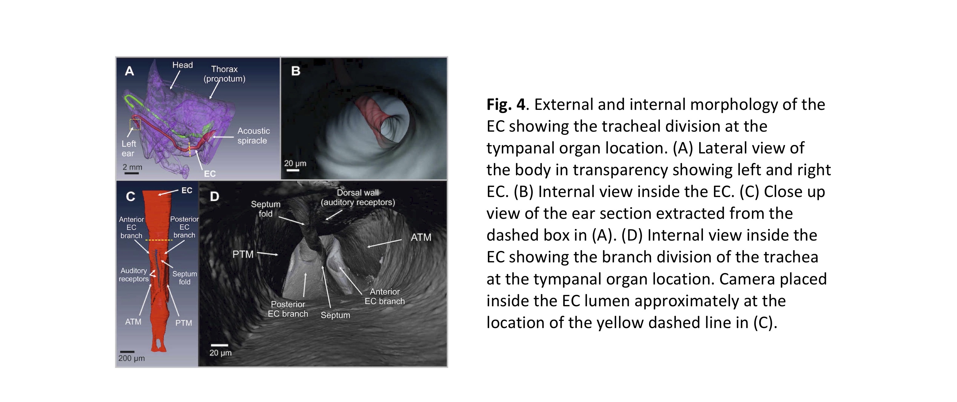 Mathematics: Finally, using our 3D geometries alongside our other data, we will produce numerical models of each hearing step to facilitate our understanding of how such a small hearing system operates in a similar way to that of mammals. These models will aid the prediction of processes that we are not able to see, including origin of travelling waves, broadband sensitivity, and acoustic triangulation; the information needed to develop miniaturized acoustic sensors.