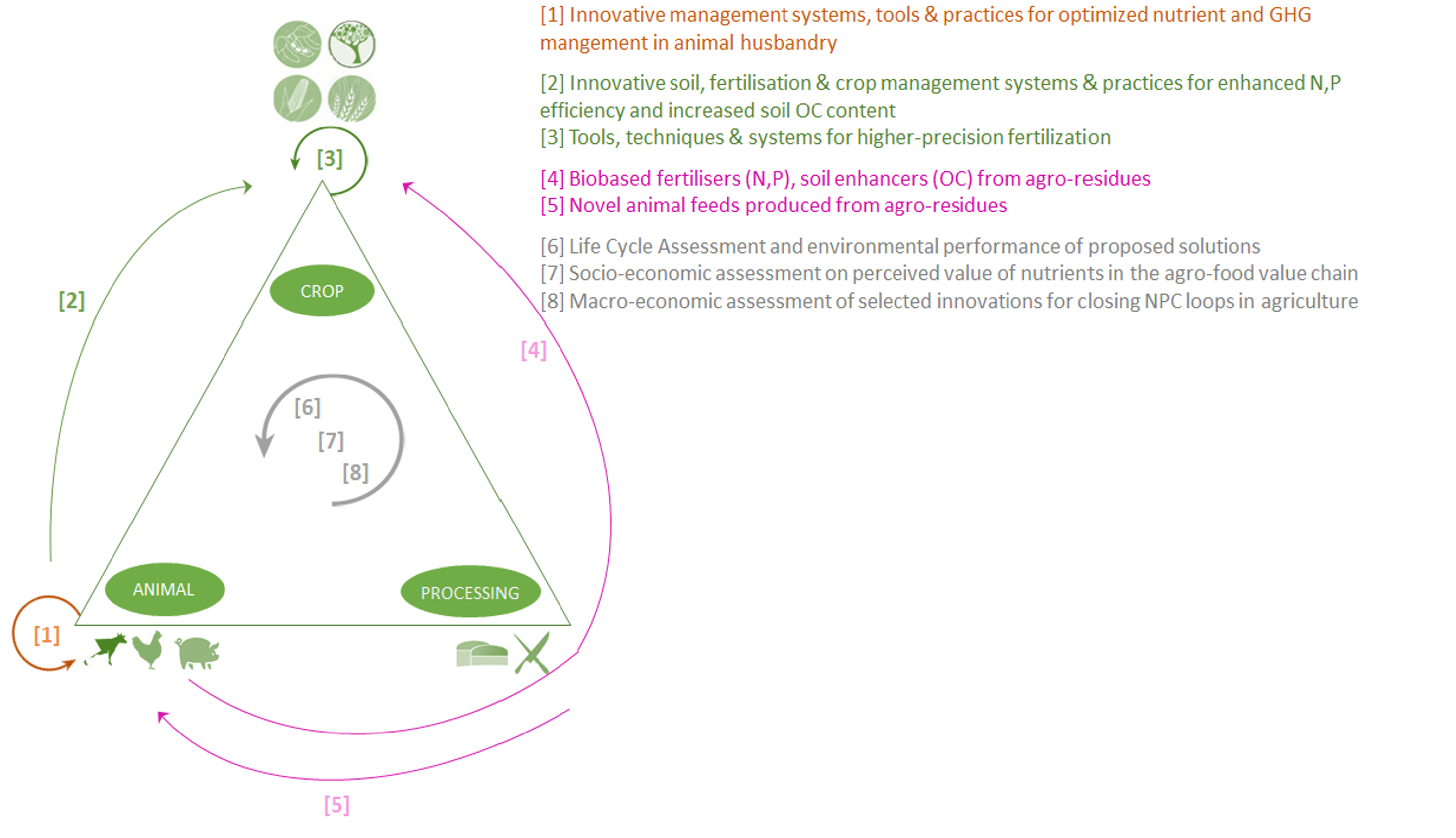 Nowadays animal husbandry varies greatly between regions and countries, with the most intensive livestock production regions requiring (feed) and generating (manure) the largest nutrient streams whilst in those exact areas fertilization is limited. Meanwhile intensive crop production requires high nutrient efficiency products often realized by mineral fertilizer and insufficient (re)use of major plant nutrients and carbon. This has led to a disjunction between these 2 conventional pillars of agriculture. N2C started from the central notion that for better nutrient stewardship and mitigation, optimisation within these 2 pillars are necessary AND reconnection is needed by integrating farm-scale processing as 3rd pillar.