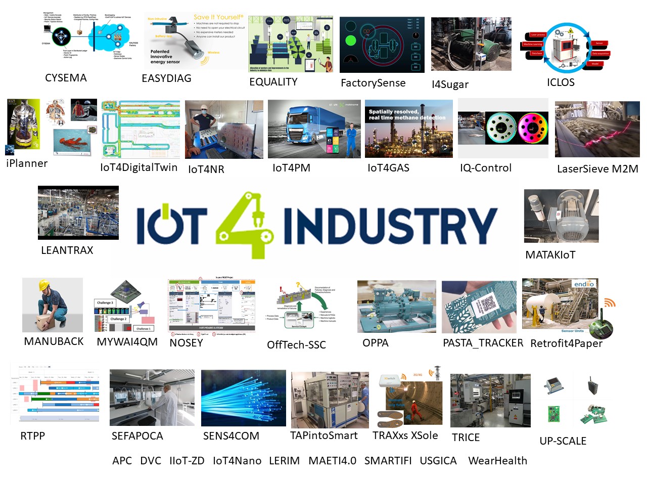 As results of these activities, 149 proposals (128 being eligible) were submitted in response to the 2 Open Calls for collaborative projects. After a phase of technical evaluation made by external experts and financial viability checks, in total 40 projects have been selected for funding (2 feasibility studies, 10 prototyping projects, 28 demonstration projects), covering 17 different industrial fields, gathering in total 112 involved entities (SMEs, large companies, research and technological organisations), including 80 SMES financially supported by IoT4Industry. After a phase of implementation (approx. 12 months per project) where IoT4Industry project partners provided support and monitoring, 39 of these 40 projects have been successfully concluded, resulting in a financial support of 3,63 millions € to 77 individual SMEs, from 16 different countries.