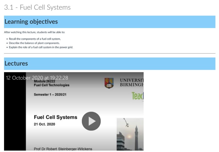 - fully implemented the MSc programme "Fuel Cells & Hydrogen Technologies" on the UBHAM e-learning system (Learning Management System, LMS) CANVAS;