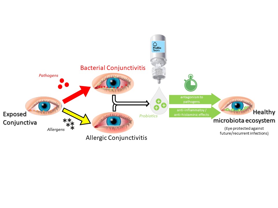 The main novelty of the treatment of bacterial conjunctivitis based on live probiotics is that it modulates the healthy microbiota, targeting in a specific way the pathogenic strains and interacting positively with the rest of the ecosystem. The dysbiosis caused by antibiotics may cause secondary complications due to pathogens overgrowth or alteration of the immunomodulatory pathways where the microbiota is involved. Probiotics not only overcome these complications but also provide an anti-inflammatory and anti-histaminic effect in a same API.