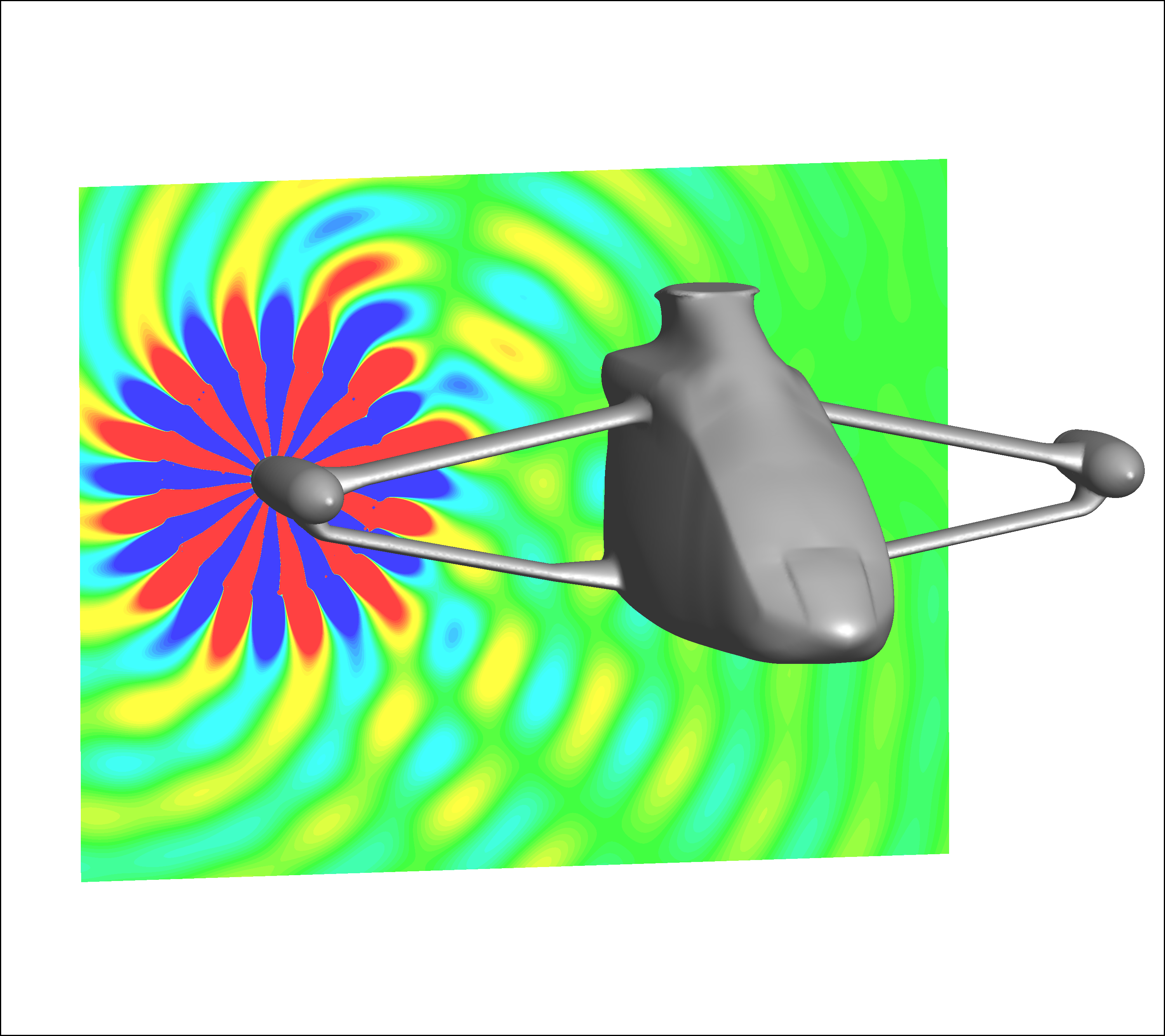 • the aerodynamic code PUMA computes the noise source by taking into account interactions with the main rotor’s downwash and the wings’ wake using a perturbation field computed separately by a CFD code,