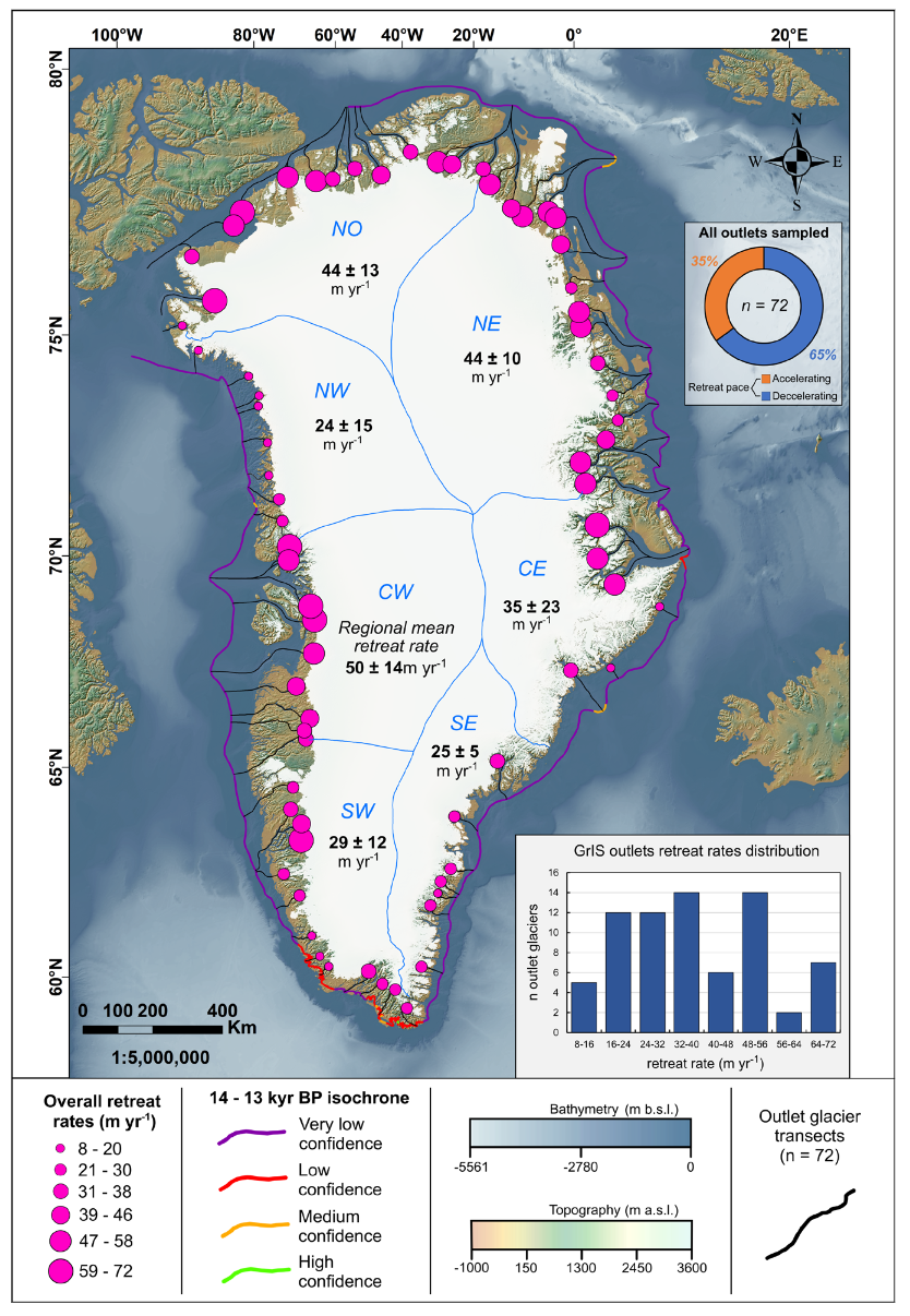 Using our landform maps and new tools for data-modelling integration we built ice sheet reconstructions for the British-Irish, Greenland and Scandinavian ice sheets. Each of these are now the state of the art for the field and I expect will serve as important benchmarks over the next few decades. They are relevant and hopefully useful for investigations wider than glaciology such as for modern and future sea level, groundwater flow, archaeology, migrations of biota, mineral exploration and substrate geology. Our finding that the thousands of years prior glacial history of the Greenland Ice Sheet really matters and significantly affects the future rate of ice loss is especially important. We hope this sets a new agenda in ice sheet modelling more closely attuned to palaeoglaciology and which leads to improvements in the robustness of sea level forecasts, of great relevance to how societies adapt to climate warming.