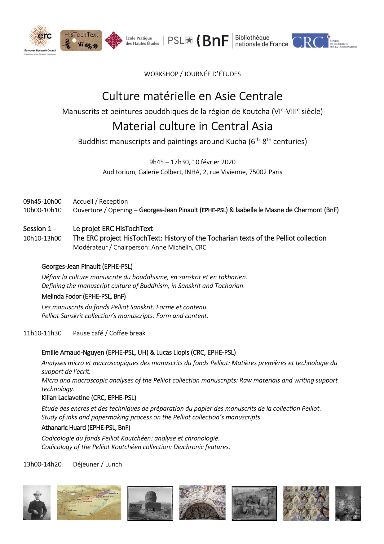 The overall objectives of the HisTochText project were oriented along different axes and resorted to complementary methodologies: philology, linguistics, digital humanities, manuscriptology, investigation of the materiality of documents. The basis of the documentation consisted in the Sanskrit and Tocharian manuscripts issued from the expedition led by Paul Pelliot in the Tarim Basin in 1906-1908, and kept in the Pelliot collection of the Bibliothèque nationale de France (BnF), Paris. These manuscripts have been found in Buddhist sites of the Kucha region, and can be dated roughly between 5th and 8th century CE. Therefore, they may provide a consistent picture for the epoch of the flourishing of Buddhism in a specific area of Central Asia.