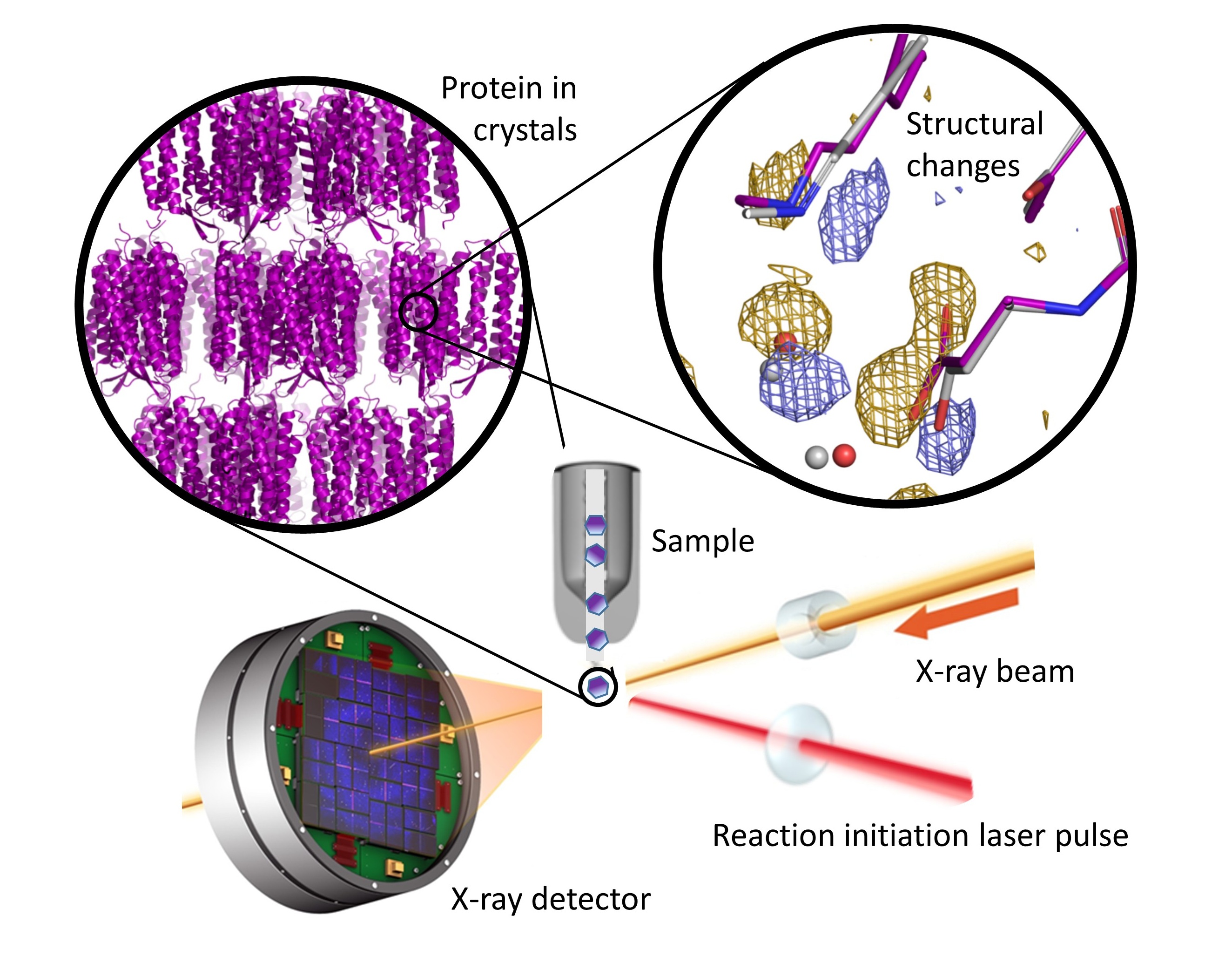 This ERC project, Proton Pump, aimed to record a three-dimensional movie that reveals how proton exchange steps between key amino acid residues are controlled by structural changes in the protein cytochrome c oxidase. In this work we utilized state-of-the-art methods of time-resolved serial crystallography at X-ray free electron lasers (XFELs) and synchrotron radiation facilities to observe how structural changes in terminal oxidases develop over time. For technical reasons, we utilized a bacterial enzyme that is highly stable from which we could grow well diffracting crystals. Our experiments required a new approach that would rapidly deliver oxygen into the protein’s active site and thereby initiate the oxygen reduction reaction in microcrystals of cytochrome c oxidase. This project therefore involved multiple challenges including microcrystal quality and density, chemical stability, reaction initiation within the microcrystals, the delivery of microcrystals into an X-ray beam, and data-processing and analysis. Structural results from this project have given new insight into one of the most important chemical reactions in biology. We have also developed new tools and methods that will help to grow the field of time-resolved structural biology and allow structural studies that go beyond a handful of naturally occurring light-driven systems. Although this project pursued blue-sky research aiming to understand a critical reaction in nature, our approaches have the potential to expand the field and allow other reactions of high medical interest to be studied by time-resolved crystallography.