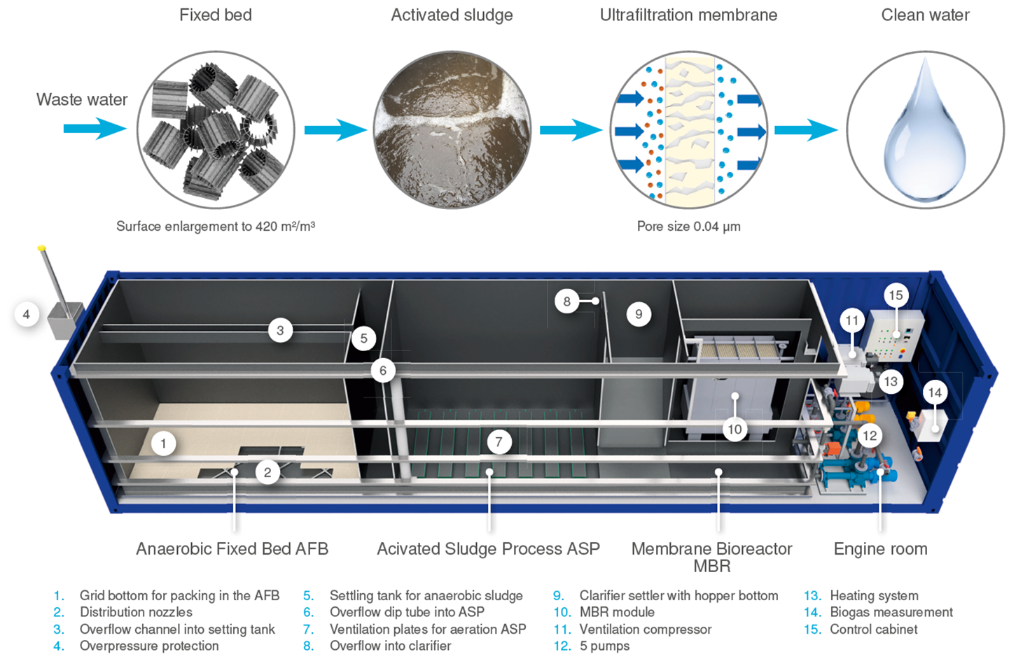 FlexBio WWTP for Decetral Use in 40ft-Container