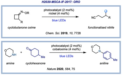 1 We initially started by looking at the possibility of accessing remotely functioanlised nitriles by the radical ring-opening of cyclobutanone imines. This work has enabled access to distal nitriel radicals that have been intercepted by nickel catalysis and further cross-coupled with a variety of building blocks including aryl and alkyl bromides and alkynes.