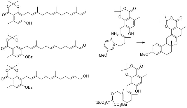 The project concerns the development of innovative methodologies for the synthesis of novel bioactive natural products analogues. Thus, the aim of this project is to devise concise synthetic routes for the total synthesis of bioactive meroterpenoids natural products and their analogueues in order to fully explore their potential application for the discovery of new medicines to treat resistant cancers and resistant microbial infections. In particular, polyenes cyclisation via radical-cations intermediates initiated by photoredox catalysis or deriving from substrate that can readily form electrondeficient carbon centres is a highly promising way to induce such a kind of reactivity in substrates not containing strained cyclic “electron-sink” groups.