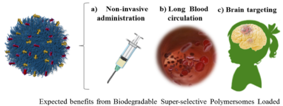 The limitations: Brain tumours are difficult to treat because of the special structure of our brain, that does not allow the passage and diffusion of most common anticancer drugs to reach the tumour. The brain is guarded by several barriers, with the most important and largest one the blood-brain barrier (BBB). In addition, gliomas are not defined lesions but they spread out within the brain, colonising several areas. This makes them extremely difficult to remove surgically and almost inaccessible to chemotherapy. Radiotherapy is the only option, although with severe side effects. Paediatric gliomas have a very poor prognosis and do not respond or frequently develop chemoresistance mechanisms to temozolomide (TMZ), one of the fewest drugs that crosses the BBB. Thus, there is an urgent need to develop innovative therapies, capable of reaching the brain and the tumours in a non-invasive way. To improve quality of these patients and to solve this burden, we propose here the use of nanomedicines as a non-invasive approach to treat brain cancer. Taking into account the progress made in nanomedicines design and the lessons learned from previous failures in clinical trials, we here design a new generation of super-selective nanomedicines that might represent the future of modern medicine allowing us to precisely target disease sites to improve efficacy and reduce side effects. Once validated, the versatility of this technology and concepts will allow its extension to the treatment of different solid tumours or even other CNS disorders (as versatile brain delivery system). We aim to combine different innovative concepts: (i)designing biodegradable polymersomes for brain delivery increasing the safety, avoiding unwanted accumulations; (ii)state-of the art equipment for characterization with a view for industrial development and translation of the technology; (iii) a novel TEM unit, to visualise the morphological characteristics of the polymersomes; (iv) super-selective binding that enables the specific targeting of tumour cells; (v) Combination therapy aiming to overcome chemo-resistance and seeking for synergy. Finally, the use of nanomedicines allows for personalized medicine, what means a paradigm shift in conventional treatments.