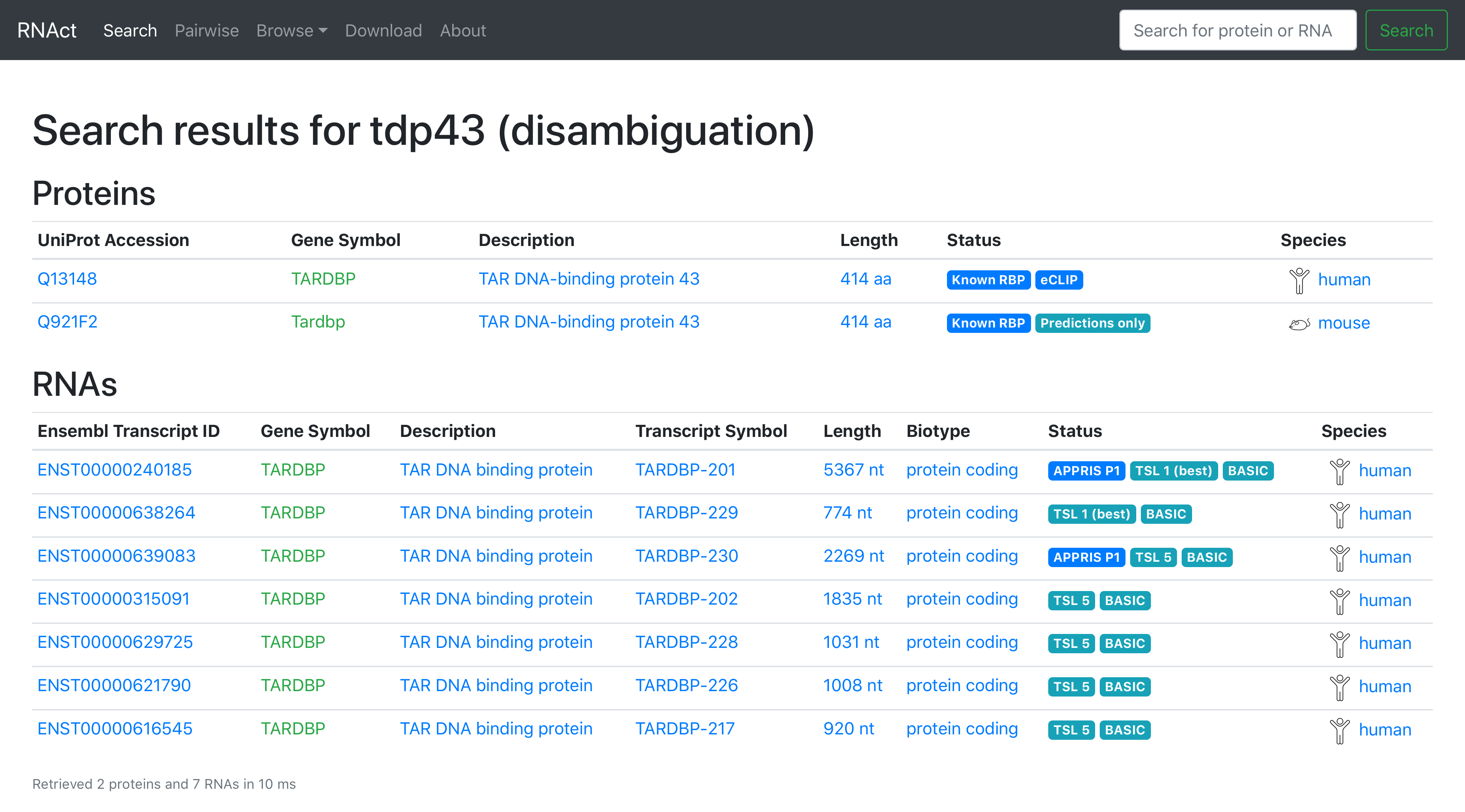 The key deliverable of the project, RNAct, a functionally annotated comprehensive reconstruction of the human RNA-protein interaction network rooted in the authoritative Ensembl and UniProt resources, is intended to be of long-term usefulness to researchers across sectors and disciplines and to complement the already excellent profile of European public resources in genomics. It has been published in Nucleic Acids Research and is accessible at https://rnact.crg.eu(opens in new window). It is now fully integrated as an external database in UniProt, the authoritative protein information database.