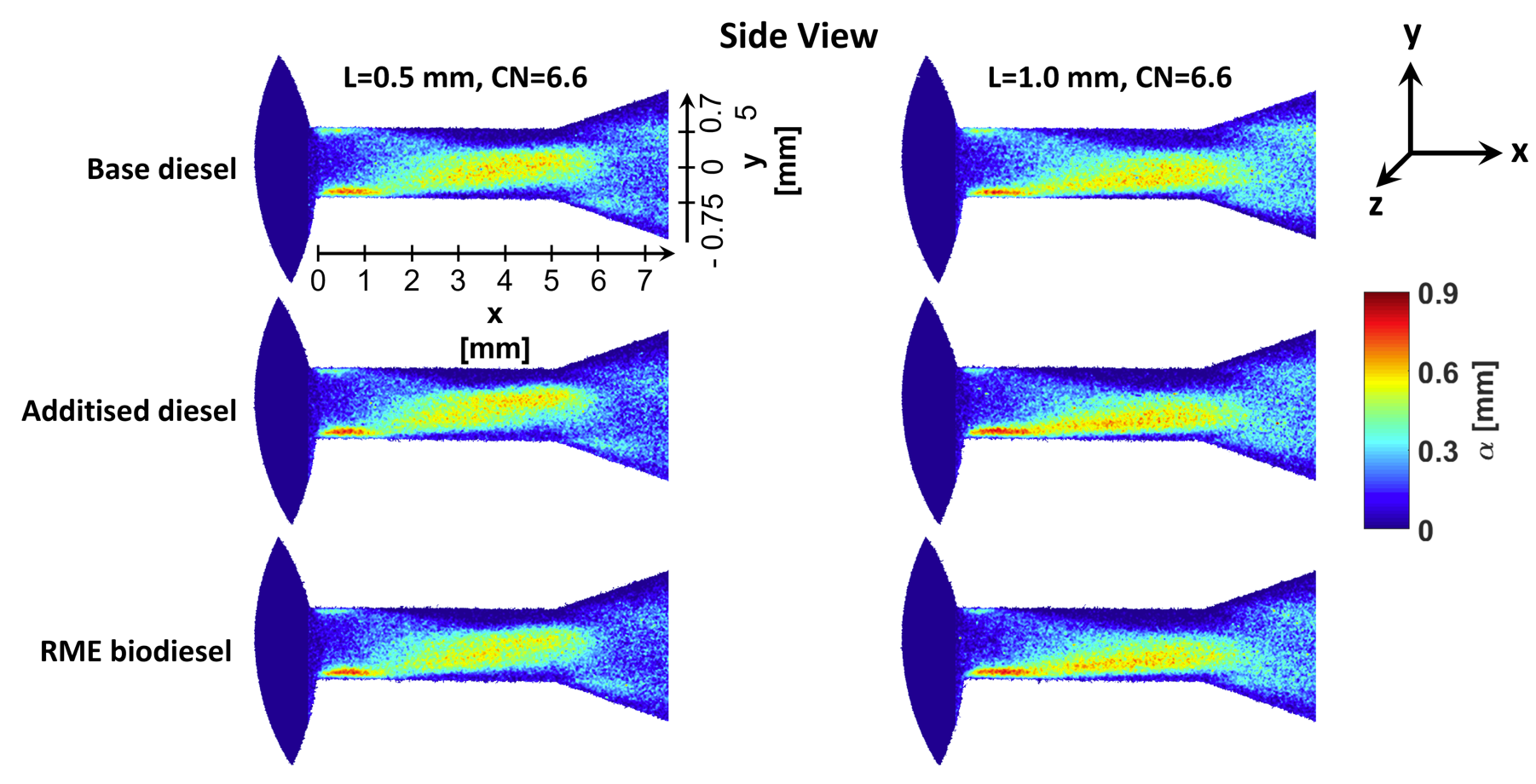 Active research on clean combustion is necessitated by the stringent emissions legislation to be imposed in Europe and the US within the next decade. On a broader perspective, societal and environmental concerns on the use of fossil fuels and after-effects on climate change dictate the development of ICE with enhanced fuel efficiency and reduced emissions primarily operating with renewable fuels. The project demonstrated tangible outcomes in terms of novel diagnostics for multiphase flows, modelling approaches for complex thermodynamics and vaporising sprays, as well as fuel technology for greener internal-combustion engines. The research activities implemented in the course of the Fellowship have demonstrated that a systematic, quantitative characterisation of the fuel injection process, encompassing both the internal flow path of the injector orifice and the downstream spray region, is crucial for the understanding of combustion quality and eventually pollutants emissions. Novel imaging techniques based on x-ray and neutron irradiation have shown great potential for the two-phase flow quantification within real fuel-injector devices, a capability which, of course, is not possible with conventional optical imaging. Furthermore, the novel predictive method implemented, suitable for deriving the thermodynamic properties of fluids of complex composition, offers increased accuracy to the numerical simulations of vaporising fuel sprays. It must be emphasised that the method is not limited to multi-component fuels but can be extended to a wide range of fluids with relevance to industrial and biomedical applications. The numerical framework developed during the fellowship has been extended to non-deterministic modelling methodologies, namely Machine Learning algorithms, which have been proven more robust in the prediction of propagation of flashing sprays in comparison to physics-based models. More importantly the project has demonstrated the potential of synthetic and alternative fuels with respect to enhanced spray atomisation and mixing, eventually leading to reduced pollutants emissions.