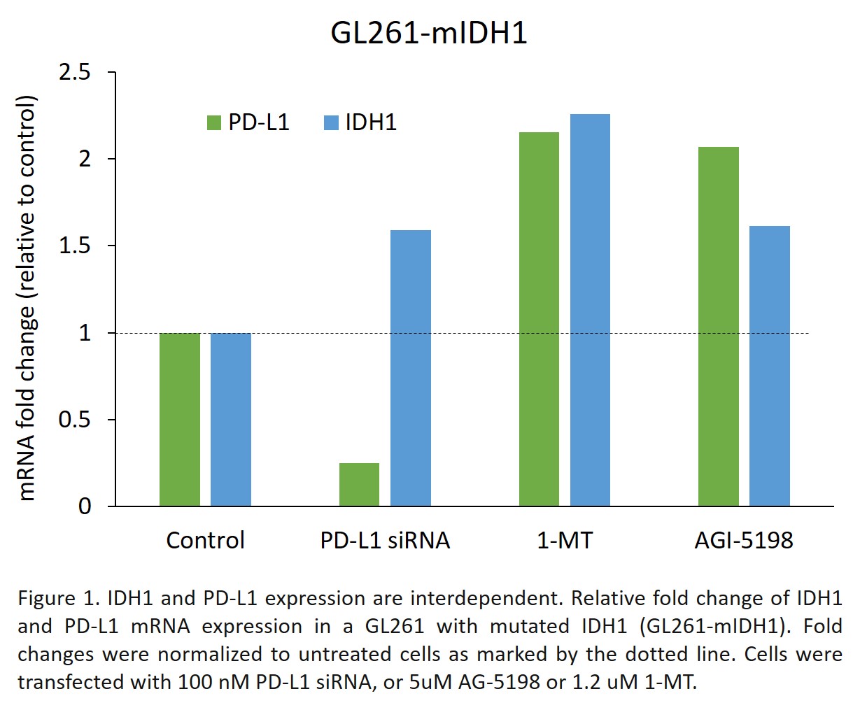 Main Results: we identified that PD-L1 has an impact in tumor metabolomic, as decreasing the levels of PD-L1 increased the levels of relevant enzymes responsible of altered tumor metabolism in gliomas (Figure 1). Interestingly, we also found that the levels of PD-L1 are greatly affected the tumor metabolism. Treating the cells with metabolic inhibitors increased the level of PD-L1 depending on the genetic background on the glioma.