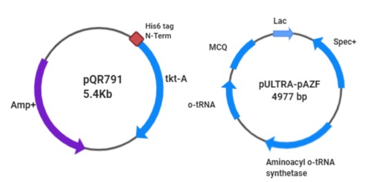 There was a small deviation in the part of protein engineering platform development from the proposed plan. The original proposal was to use BEk for initial validation, but instead this was done using the TK enzyme system. The appropriate sites within TK were identified for NNAA incorporation after SDM to introduce amber stop-codons. The structural changes of TK were studied on different external effects such as denaturing agents, temperature etc. This was studied through the FRET signal generated by the dual fluorophores incorporated into the engineered TK.