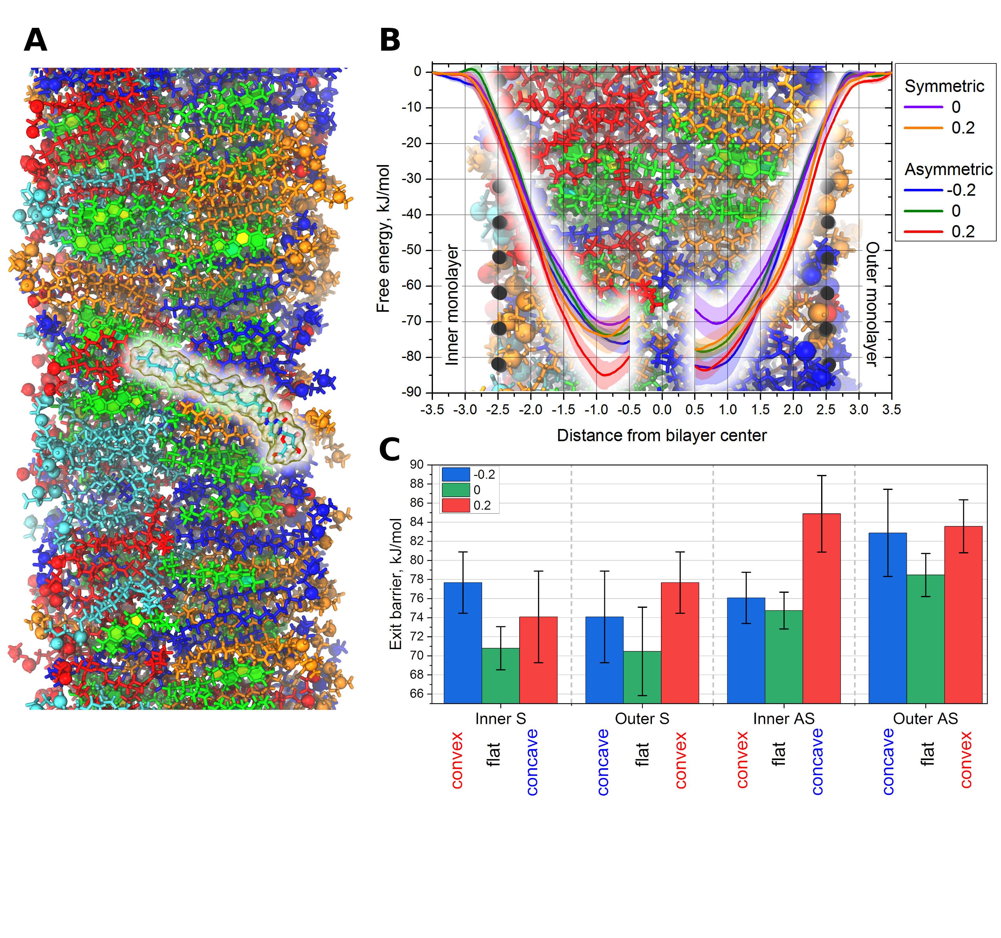 In this project we focused on interaction of squalene-based drugs with the membranes, which is crucial for an effective transport of the drugs into the cells, and their selectivity to the membranes of different composition and curvature, which may serve for targeted delivery and action, especially in oncology for discrimination between normal and cancer cells.