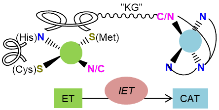 Since it is anyway easier to synthesize and use peptides instead of proteins, espacially for industrial application, peptides were designed and synthesized where an NHC ligand was incorporated. Different metals could be coordinated to those artificial peptides and the host group is now focusing on the binding of copper.