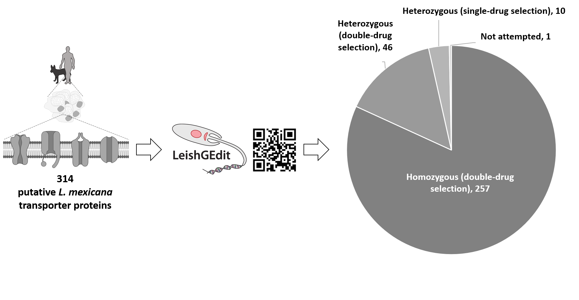 Due to unique genomic features, the functional study of different genes of Leishmania parasites lagged in comparison to other protozoan parasites. Taking advantage of the revolution in genome editing brought about by the discovery of the CRISPR-Cas9 system and its adaptation for biotechnology, the Gluenz lab developed a novel high-throughput genome editing method for Leishmania parasites, which allows the rapid generation of gene knockout mutants enabling for the first-time large-scale loss-of-function screens to discover genes essential for Leishmania survival.