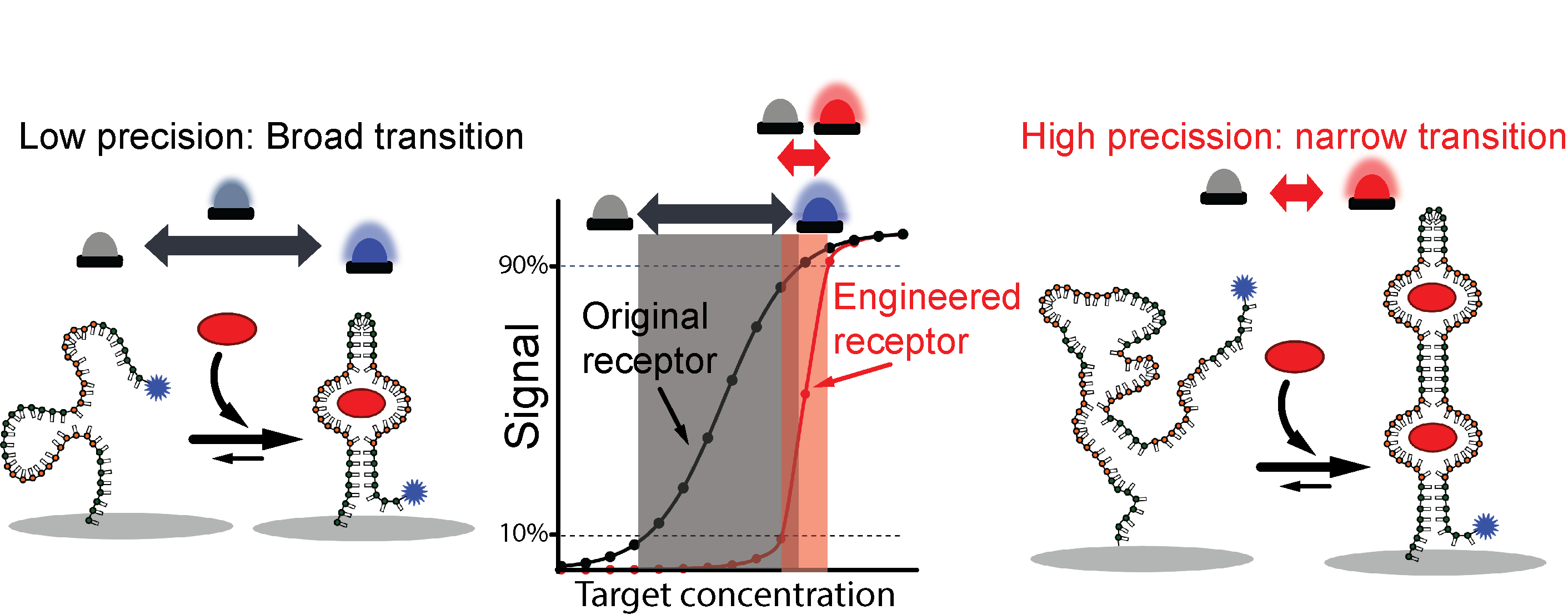 In the MSCA action, the experienced researcher (Dr. Alejandro Chamorro Garcia) spent the outgoing phase in the host institution (University of California Santa Barbara, UCSB) in Prof. Kevin Plaxco research lab. The work carried out during outgoing phase the work had been centered in the use of diverse mechanisms, such as cooperativity and sequestration, to tune biological receptors’ recognition properties towards the application of the improved receptors in biosensing assays. With the final goal to achieve improved response from the sensing assays in which are applied, we focused on narrowing the dynamic range to obtain more precise reads of subtle changes in concentrations, in an on/off fashion. In the incoming phase the experience researched joined Prof. Francesco Ricci lab (University of Rome Tor Vergata) to further pursue the study of mechanisms to tune binding properties of bioreceptors and its applications in the development of biosensors.