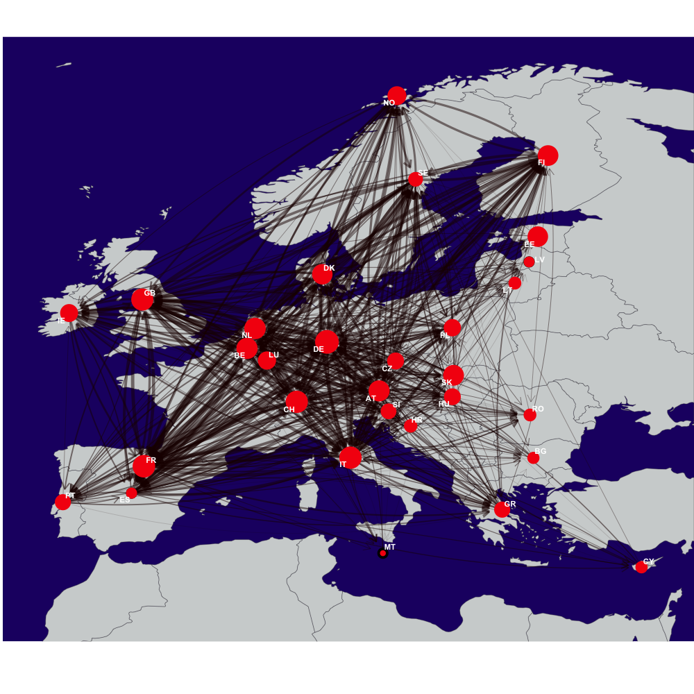 This project studies from a macro perspective the structure, dynamics and inter-layer interactions of the multiplex network, which consists of the overlaying and co-evolving networks generated by flows of trade, capital and technological knowledge, and spans the European Single Market – the largest and most integrated trade bloc in the world with established free movements of goods, services and factors of production and minimal institutional barriers to trade, capital and technology flows. The nodes of this network are not individual business units but entire economies. Trade flows are traced through multiregional input-output (MRIO) data, capital flows through bilateral foreign direct investment (FDI) data, and technological knowledge flows through patent co-invention and citation data. Among other hypotheses, the project examines whether and to what extent the technological divide between Europe’s north-west core and south-east peripheral economies is determined by their mode of insertion in the European Production Network (EPN).