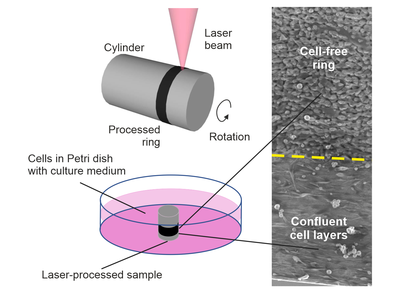 3. Areas which repel cells can be formed on polymer samples for orthotic prostheses by ultrafast-laser processing.
