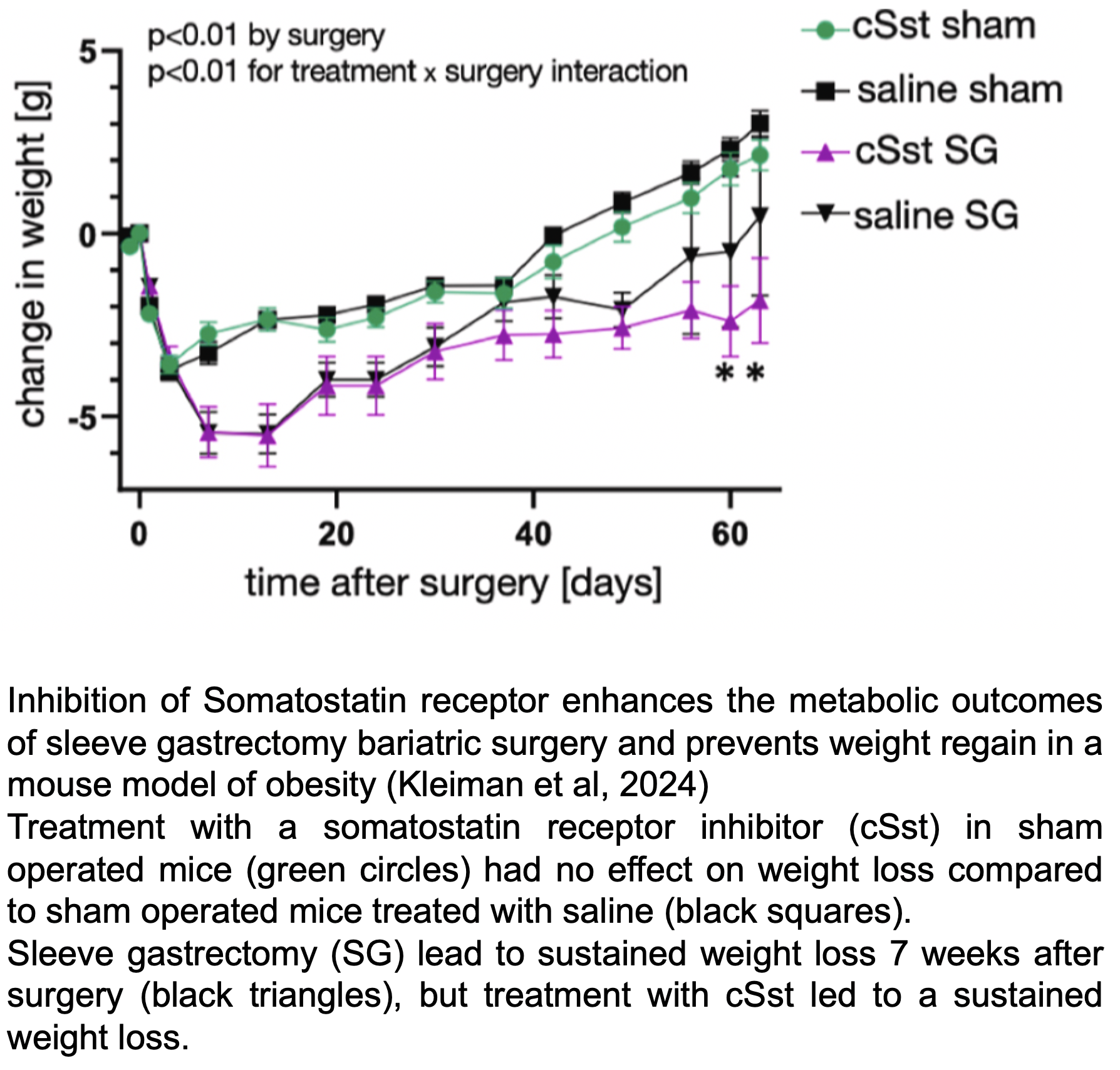 We identified that inhibition of somatostatin can enhance the metabolic outcomes of surgery - in mice - by increasing secretion of gastrointestinal and pancreatic hormones, providing compelling pre-clinical data for future development. The results of the project are summarized in over 10 publications, that explain the weight loss independent effects of bariatric surgery on hepatic and systemic metabolism, and provide mechanistic explanations for the metabolic outcomes of surgery that extend beyond weight loss.
