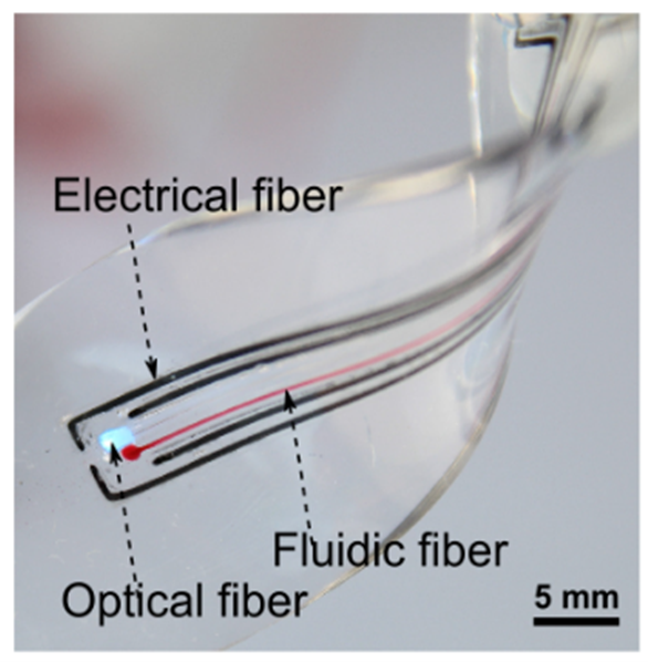 We demonstrated unprecedented level of integration of electrical, thermal, microfluidic and optical elements for devices with multimodal sensing and actuation capability. This was made possible by novel 3D printing. functional inks and discrete electronic components. We implemented the focal cooling modality exceeding the state-of-the-art in terms of speed and precision of cooling.
