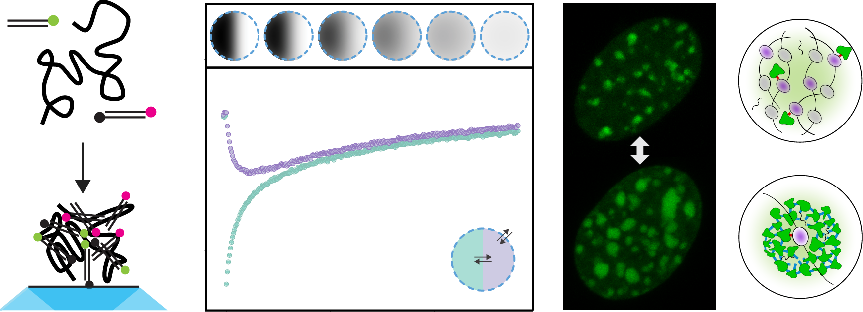 In this project, we have established the above-mentioned assays and have studied the mechanisms underlying the dynamics of modified chromatin domains. Our results have shed light on the question how phase separation and the action of read-write proteins regulate modified chromatin domains, and how this impacts cellular function. We anticipate that our results will be helpful for upcoming applications, for example in the context of condensate-modifying epigenetic drugs.