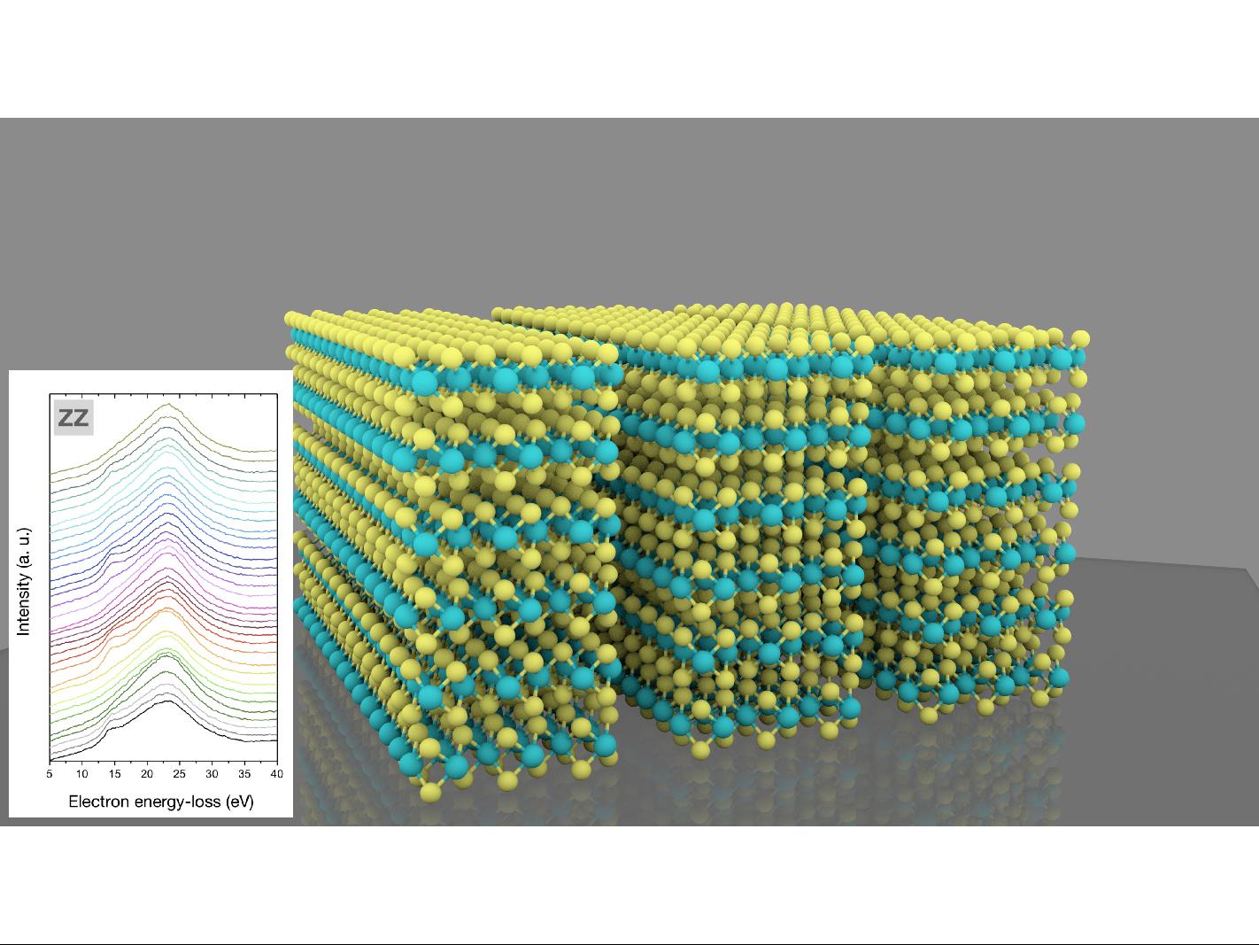 b. Mapping the interplay between edge-induced structural, electric, and magnetic properties of 1D TMDs. The goal is to pin down the unique physical properties of the edges of 1D ZZ (AC) MoS2 nanoribbons such as metallic edge states, the tunable band gap, and the ferromagnetic order. This will be achieved by optimizing low-voltage electron energy-loss spectroscopy (EELS) measurements, including momentum-resolved EELS, to access the local band structures and dispersion relations within nanoscale volumes.