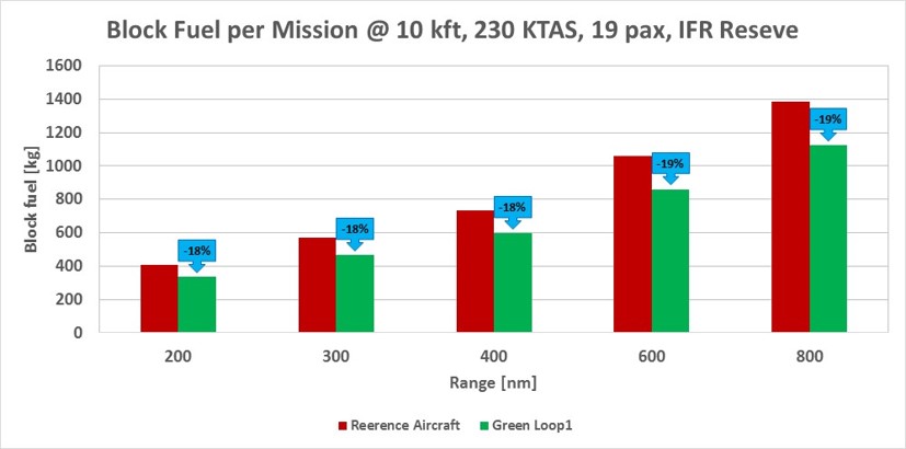 The preliminary integration of the abovementioned technologies into the Green Loop 1 aircraft configuration shows that: