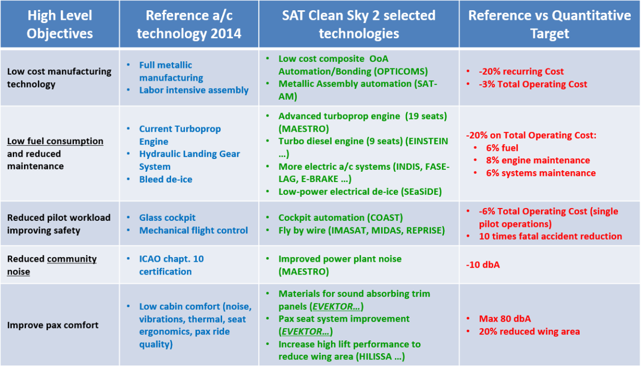 In the framework of Horizon2020, EU (European Union) has funded the Clean Sky 2 SAT TA (Transverse Activity) initiative to reduce technology gaps enabling a reduction of SAT operational cost and environmental impact, ensuring good levels of operational safety. SAT related activities join more than 80 beneficiaries across the Europe with an overall budget of about 68 millions (about 4% of total Clean Sky 2 funding).