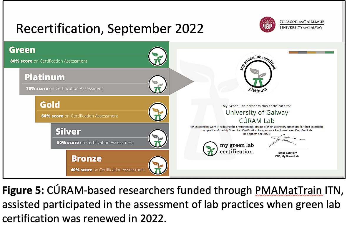 The PMSMatTrain training network has delivered superior education to 15 early-stage researchers that will significantly enhance their future careers. CÚRAM researchers joined a lab that was the first in Europe to be certified as 'Green' by American non-profit 'My Green Lab' (https://www.youtube.com/watch?v=9QuQ6XoEMKs(se abrirá en una nueva ventana)). In 2020, 8 PMSMatTrain researchers enrolled in the 'Green Lab Principles and Practice' 5 ECTS module, the first of its kind. Lab greening in Galway inspired SDU researchers to pursue MGL's Green Lab Certifiaction, with the lab being the first in Scandinavia to do so, in 2022. The proteomics lab in Chieti followed by gaining certification in 2023.