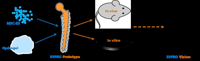 The advance of EVPRO represents a vast opportunity for the design and development of future osteo-related medical devices and implants of all kind. Therefore, strategies to foster bone regeneration are intensely sought and translation of this innovation into a practical use product is highly desirable for industry and society. The multidisciplinary network of EVPRO will apply state-of-the-art expertise to develop highly-innovative concepts and prototypes to progress towards next steps in the translation of bioactive (nano) materials and R&D to clinical practice. Overall, EVPRO provides new therapeutic biomaterials for clinical bone implants and joint replacements by excellent options to create new biomedical and technological opportunities. With impact beyond EVPRO, the actions will enable establishing feasible solutions with high market potential for emerging novel MSC-EV-biomaterial technologies that instruct and control tissue (re)generation. EVPRO will also provide a novel platform for future application of MSC-EVs-hydrogel-TiO2 coating to many types of implants.