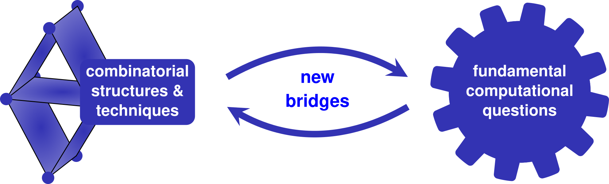 Our goal is to obtain advances on foundational computational questions with the goal to reveal new algorithmic techniques, whose efficacy is corroborated by a rigorous theoretical analysis. This type of foundational results aim at being a first crucial step toward the possibility of obtaining fast ways to solve relevant computational problems that cannot be solved with current methods within any reasonable computational time.
