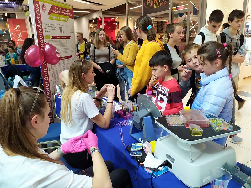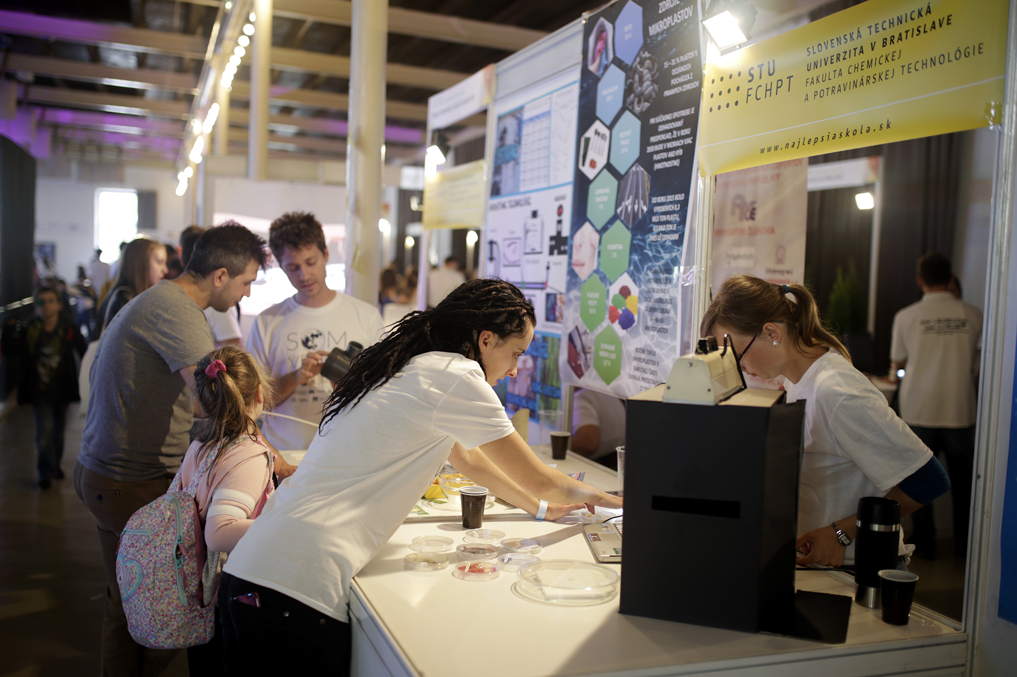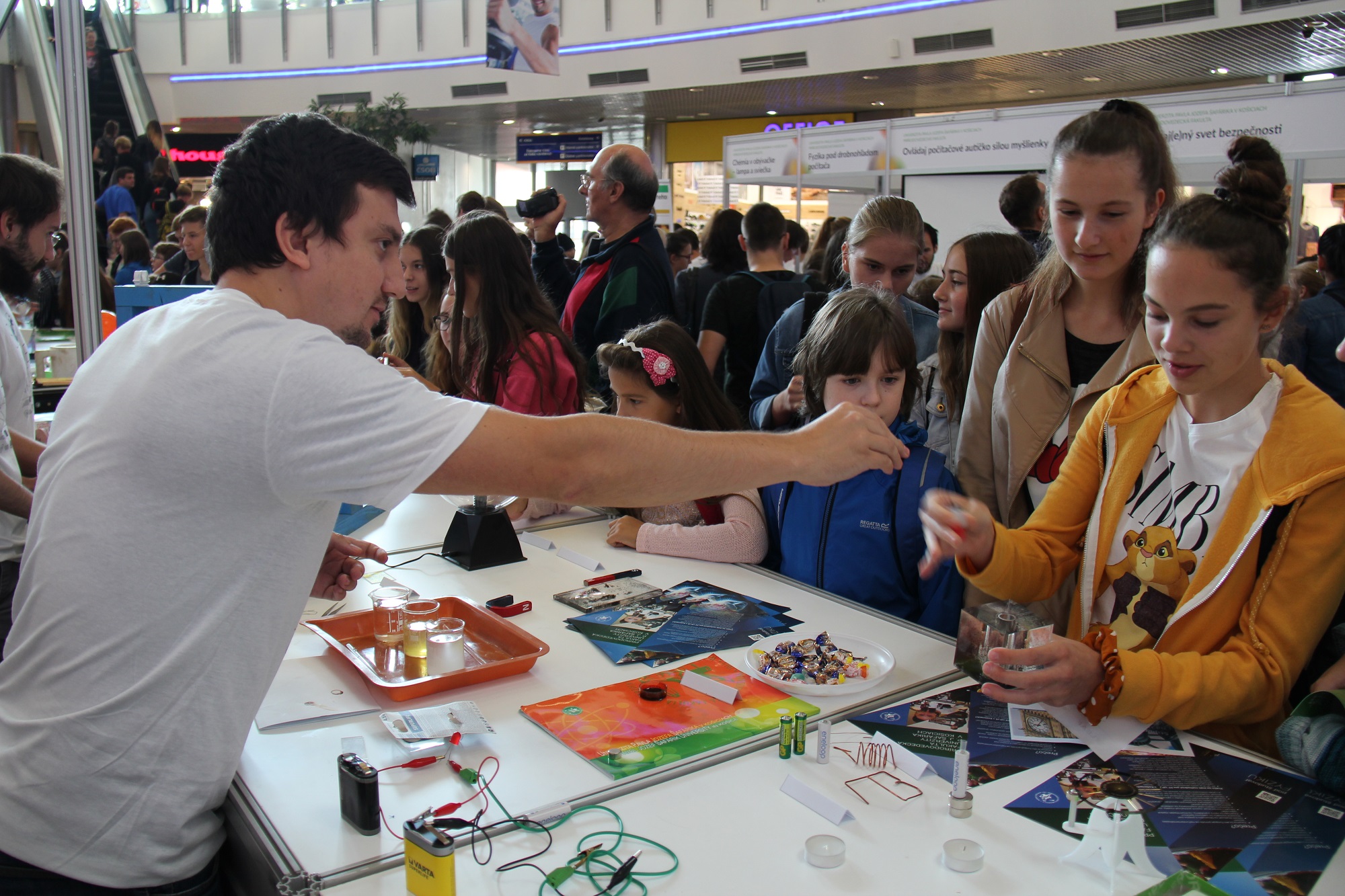 During the event science show, hands-on experiments, demonstrations, interactive activities were prepared for visitors. In the Old Market Hall in Bratislava.