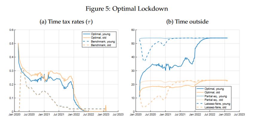 3. A final component that was added to this project concerns the implications of Covid-19 and future pandemic diseases, and the role of technology in it. We build a model where individuals can protect themselves but the government can also intervene, to study how much old and young individuals will privately protect themselves and in which way the government should intervene on each of these groups.