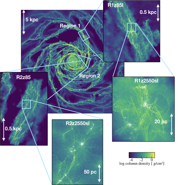 We worked on a method for following individual star particles in larger scale simulations (i.e. at scales above where the stellar initial mass function can be resolved) (Rieder et al. 2022, Liow et al. 2022), in the AMUSE code (and Bending in sphNG). The calculations in Rietder et al. 2022 were able to model stars down to 1 solar mass in a galactic subregion.