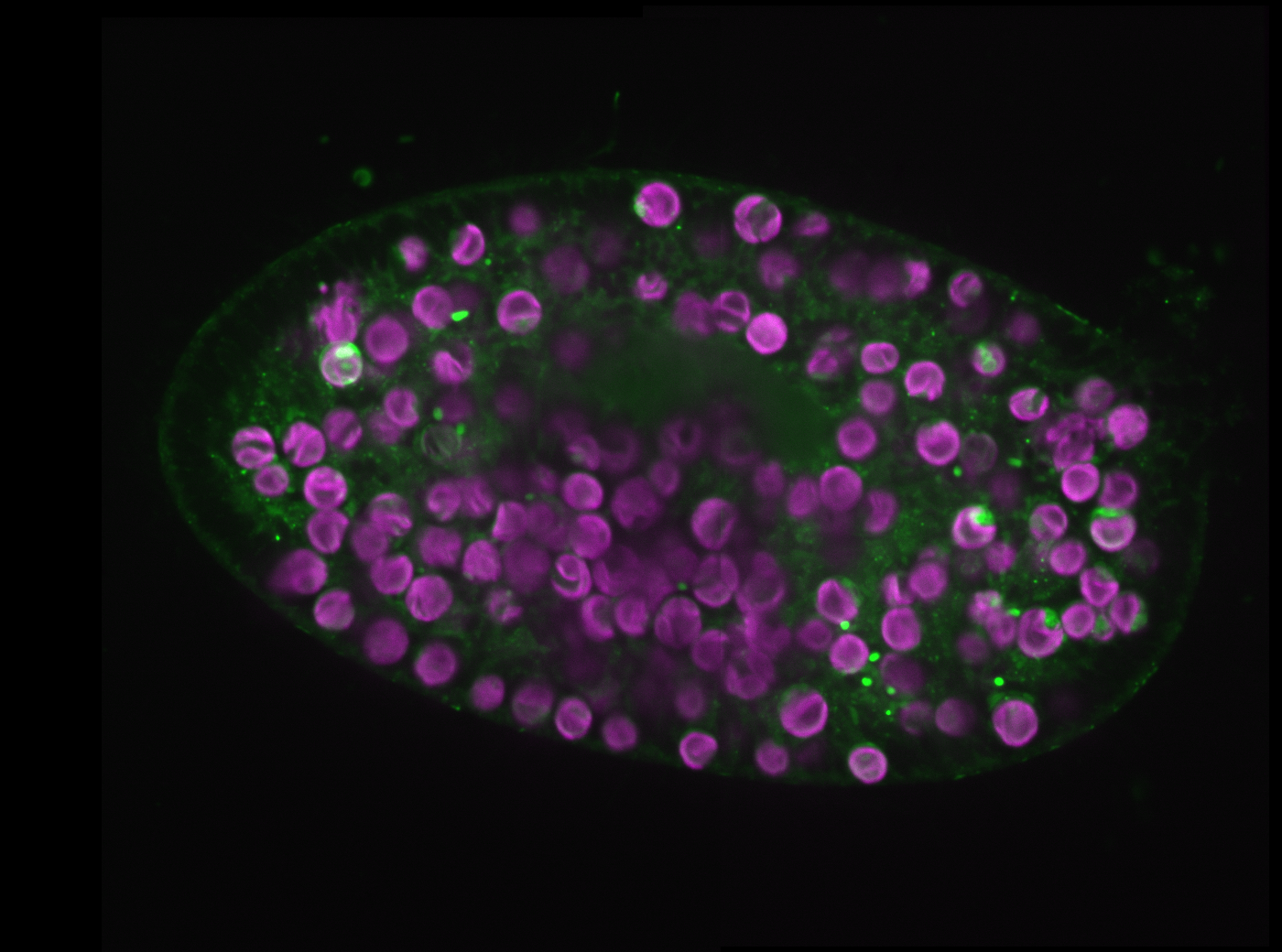 We understand very little about how endosymbiotic interactions can arise, and which cellular mechanisms underpin an interaction to allow such systems to become stable. The aim of this project is to develop an experimental system for identifying the cell biology that controls an endosymbiotic interaction. To do this we focus on a microbe, a single-cell protist, called Paramecium bursaria which can incubate hundreds of photosynthetic green algal microbes within the body of its cell. This is an excellent system for understanding endosymbiotic interactions because the interaction has yet to become an obligate interaction, which means we can experimentally manipulate both partners separately and together. These organisms form an endosymbiotic partnership, exchanging metabolites and providing other functions important for their collective ecology.