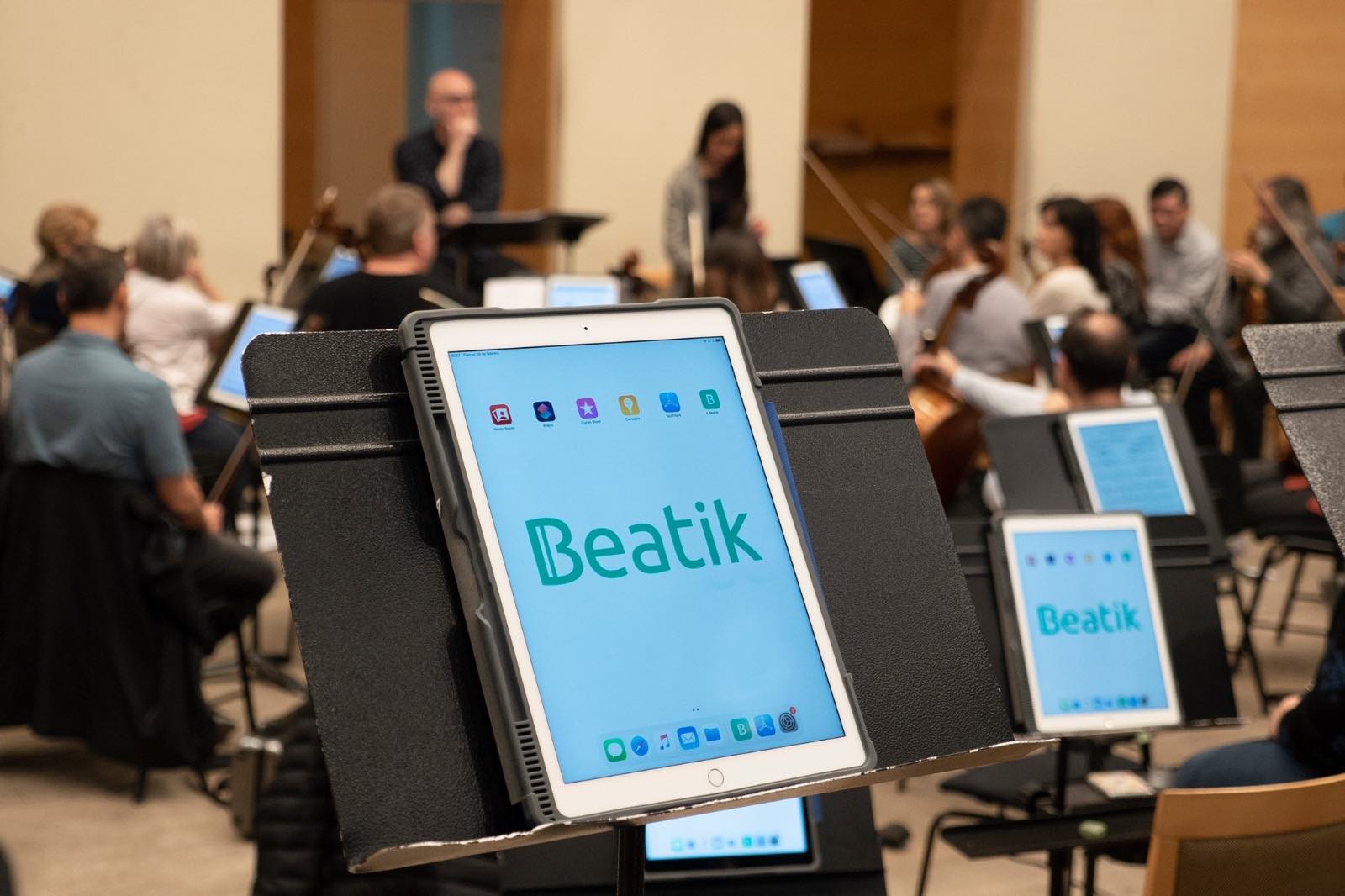 BEATIK is a 100% paperless solution for the use and distribution of music scores. Beyond simply representing the written music on a screen, the BEATIK app features our unmatched score-following and auto-scroll technology and includes a host of other innovative tools for interactions between musicians working together in large groups. BEATIK will provide an integrated platform and eco-system to help all musicians and the institutions they belong to, such as orchestras, conservatoires and music schools, from performance preparation to sharing annotations and score distribution. This will greatly reduce the quantity of paper used in distributing sheet music, its storage and transportation, costing average €150k/institution/year. BEATIK will create savings for music organisations, providing a tool to supersede paper scores and the limited digital scores solutions currently on the market. We forecast €2.94M sales in three years after this Phase 2 project completion, with annual profit of €1.58M (EBITDA) after €1.07 million total investment.