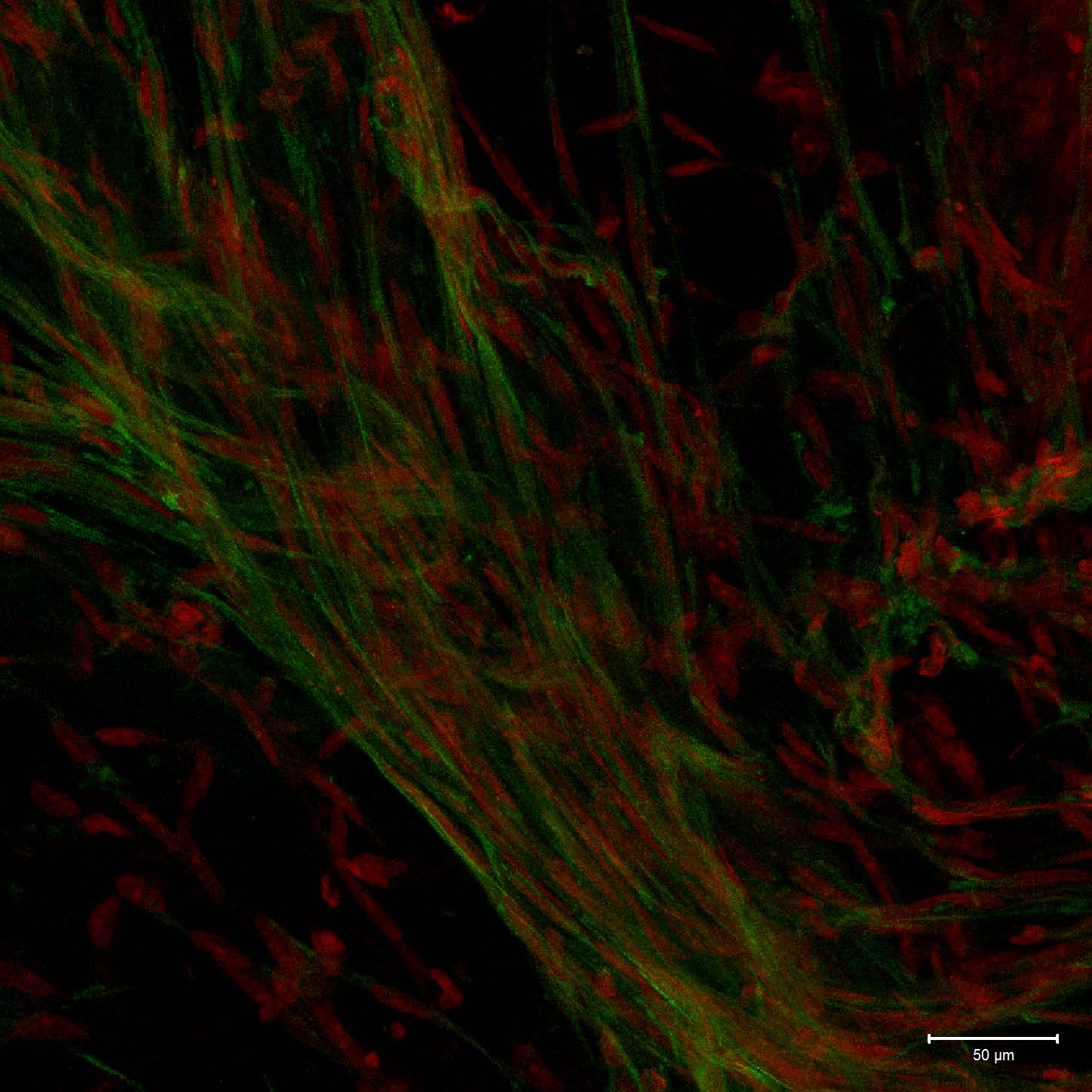 - Nanofibrous scaffolds with optimized biological and mechanical properties – iPSCs will show complete scaffold colonization, the scaffold will enable vascular ingrowth and mechanical properties respecting needs of particular tissues.
