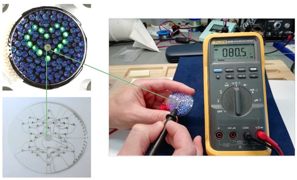 First integration of Functional Crystals with printed LED layer and printed Perovskite Solar Cell (PSC). (New user interfaces.)