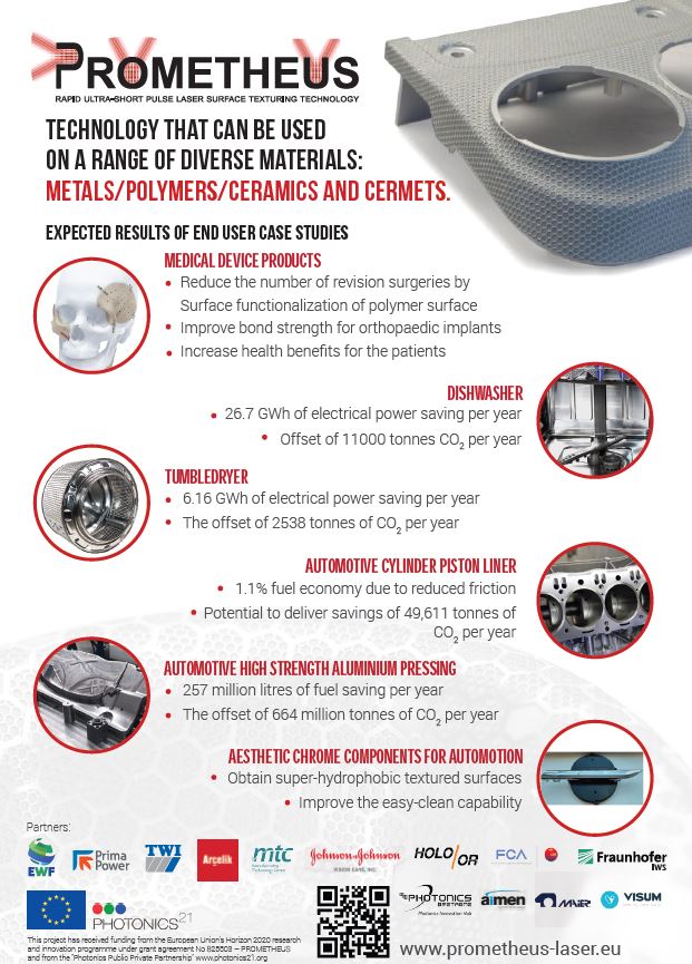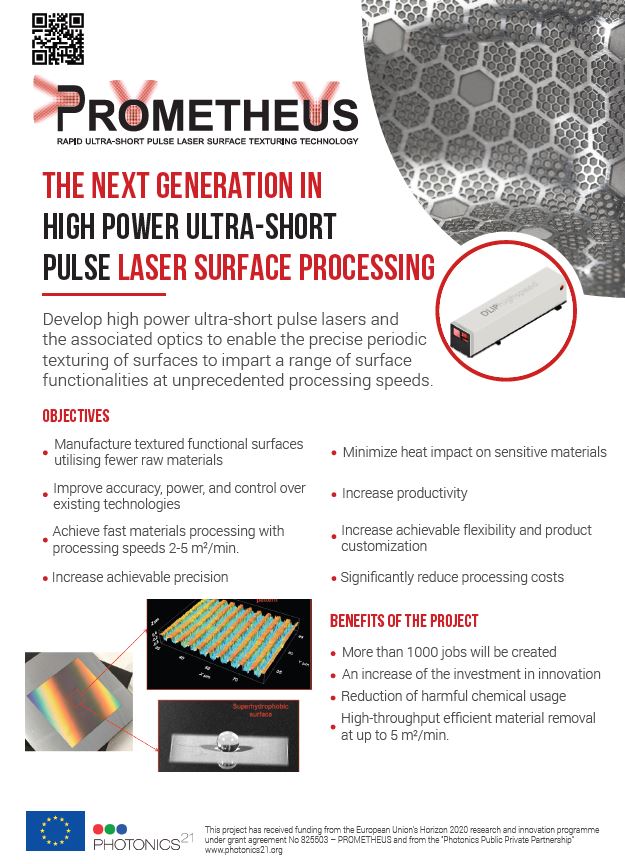 Periodic Reporting for period 3 - PROMETHEUS (Pulsed Rapid ultra-short laser surface texturing for Manufacture of FlexiblE and CusTomisEd ProdUctS)