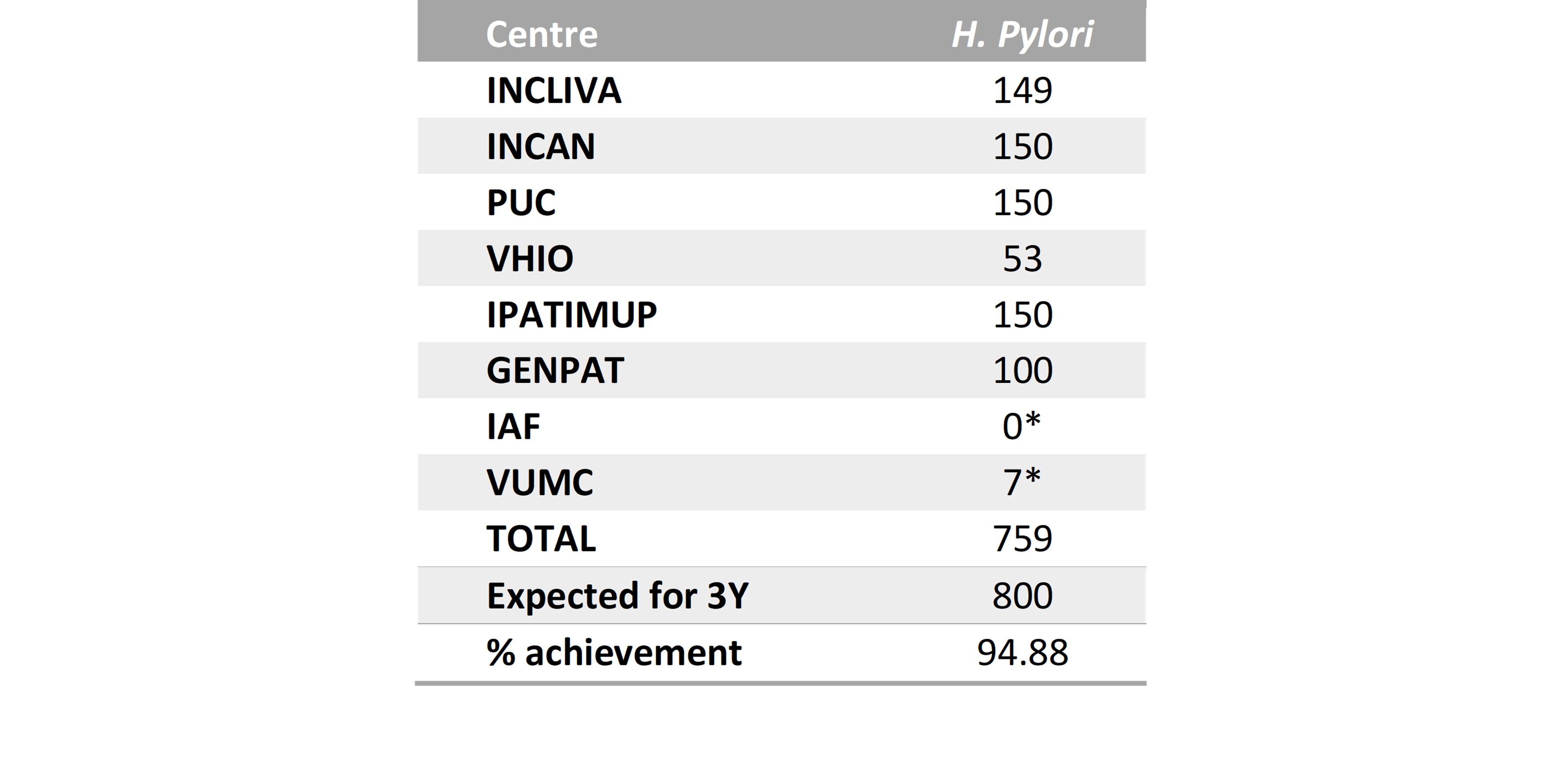 The LEGACy clinical studies met the specific endpoints providing new data with a holistic overview of gastric cancer epidemiological, clinical, protein, molecular, immune, and microbiome characteristics of EU and CELAC cohorts, which have been presented to the scientific community and the civic population through different channels. Moreover, our interventional study showed positive results, as a strategy for gastric cancer prevention, that could be easily applied worldwide.