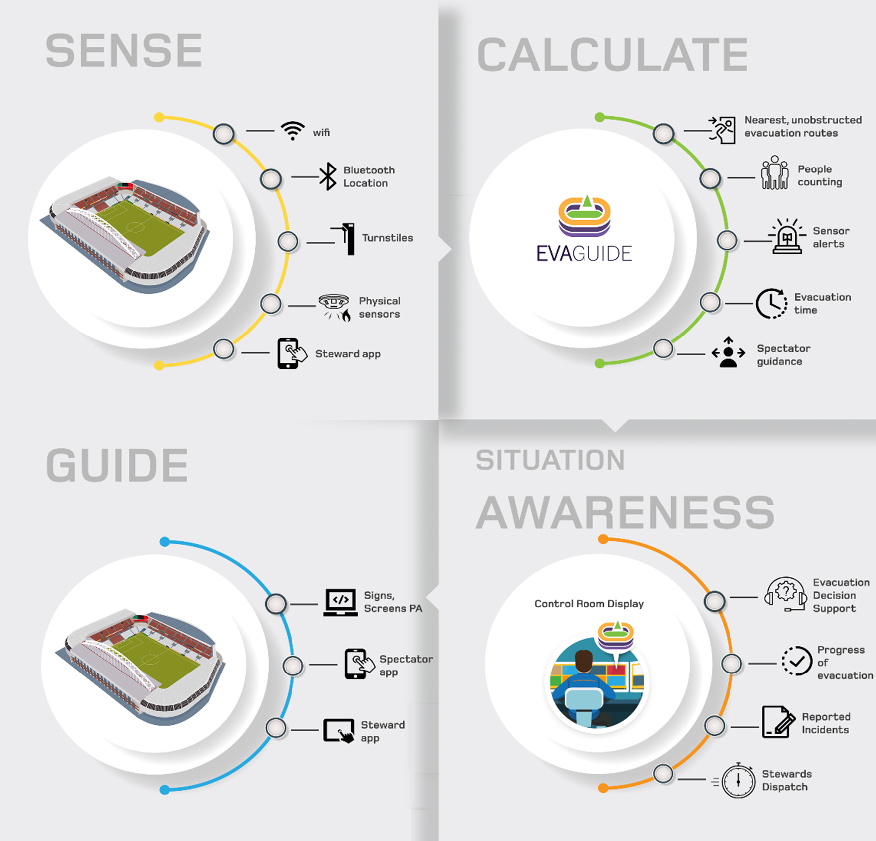 Periodic Reporting for period 2 - evaGuide (Security Management Platform for enhanced situation awareness and real-time adaptive evacuation strategies for large venues for sports and entertainment)