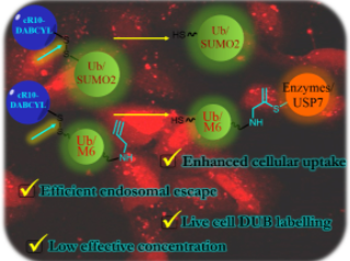 - We introduced the DABCYL small molecule fused to cell penetrating peptide attached synthetic proteins (e.g. Ub) and observed threefold higher uptake efficacy in live cells compared to unmodified ones.