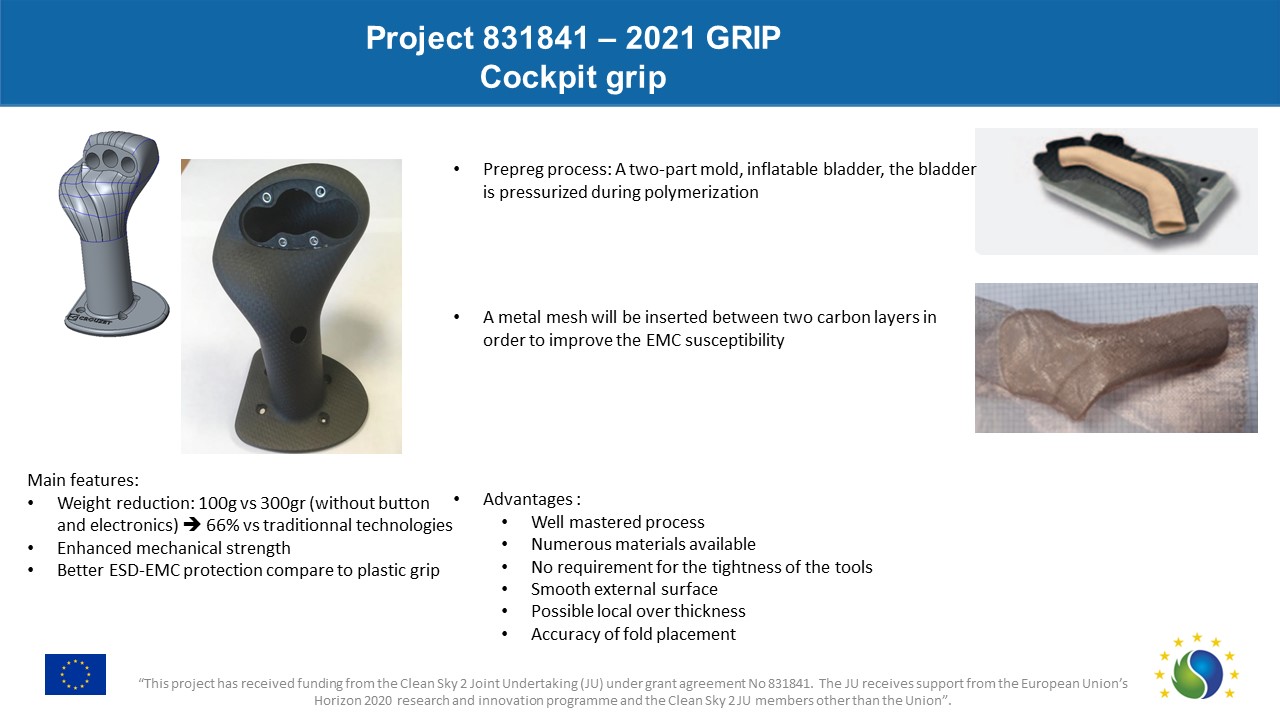 5. A Cockpit grip in carbon fiber to have a significant gain in weight 66% versu composite;
