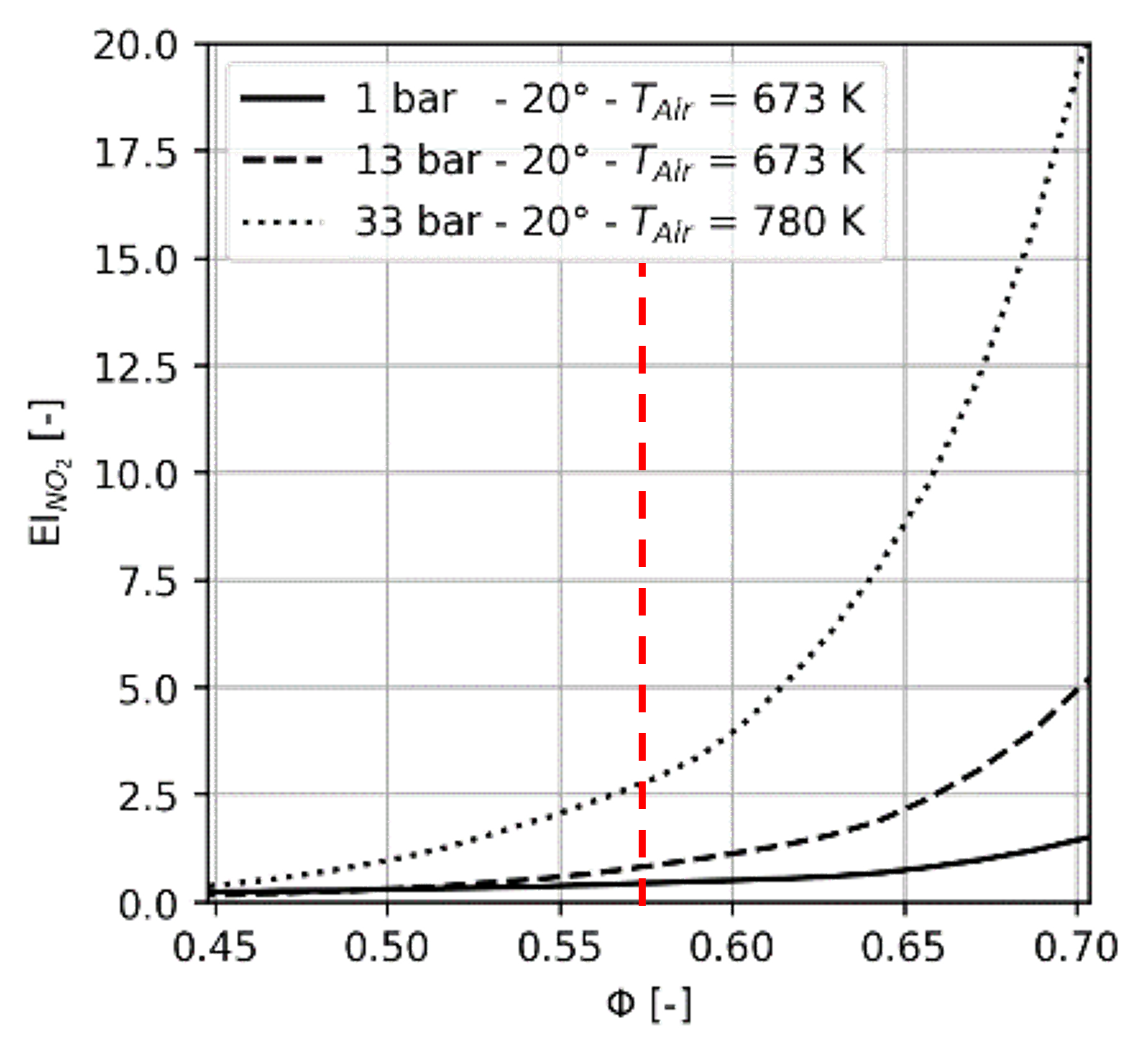 A hybrid approach combining Chemical Reactor Network and best fitting of the exp data, was used to upscale measured NOx emission up to max take-off conditions for reference engine cycles. Figure 14 reports the obtained scaled NOx emission for cycles at 13bar and 33bar. For the target air fuel ratio (26) predicted emissions are below 2 g/kg.